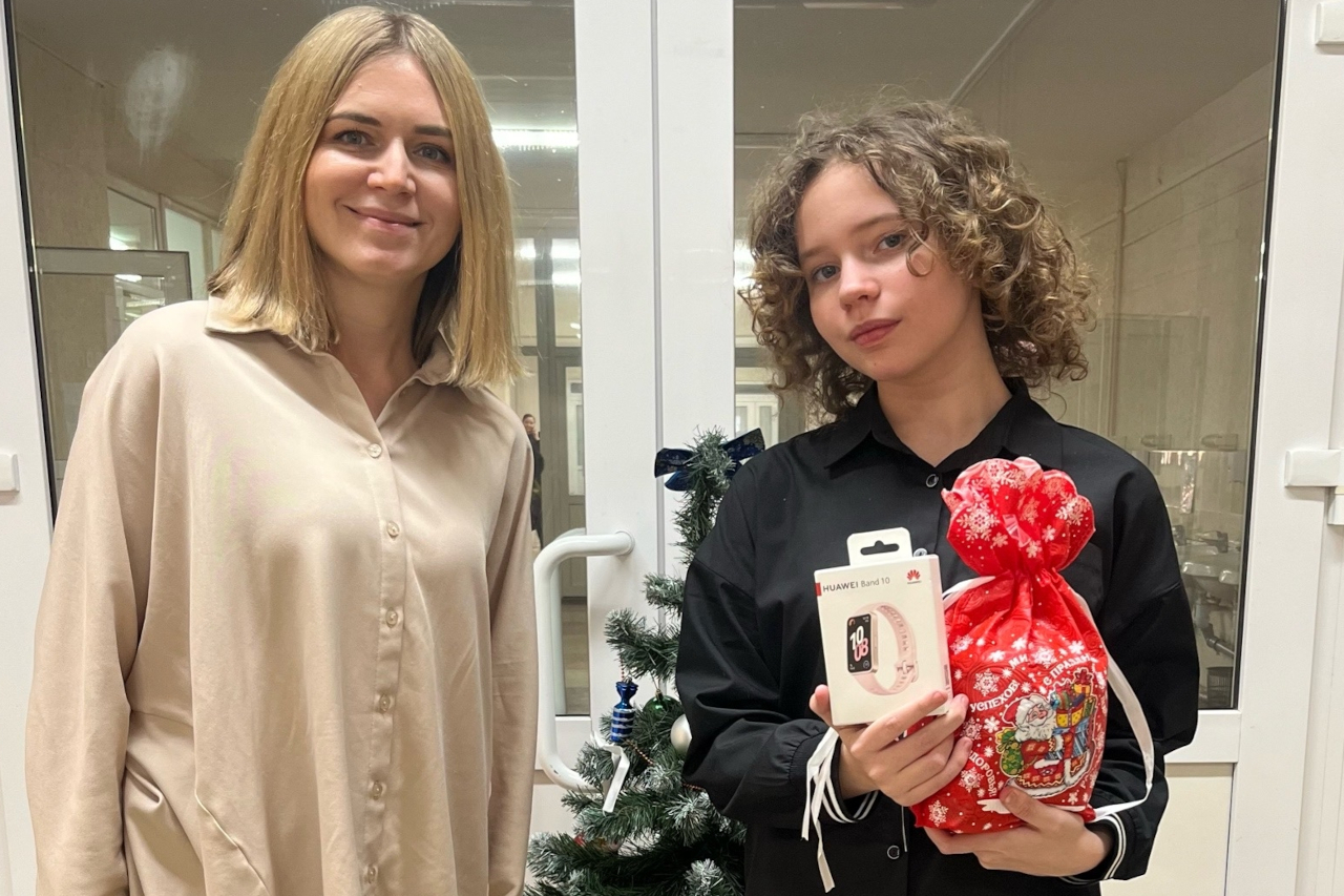 Фитнес-браслет пятикласснице Виктории подарила Анастасия Денисенко. Вика – творческий ребенок. Она принимала участие в городских и областных конкурсах и конференциях. Среди них конкурс чтецов ко Дню Победы и конференция «Знание-Поиск-Творчество-Труд». Старается хорошо учиться и участвует в школьных олимпиадах, увлекается спортом. Анастасия Владиславовна пожелала Вике, чтобы этот год сложился удачно, был наполнен смыслом, добрыми событиями и возможностями личностного роста.