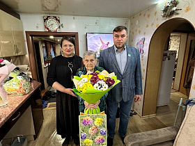 Депутаты поблагодарили Александру Ионовну за труд, сказали много добрых слов и пожелали крепкого здоровья, душевного тепла и долгих лет жизни в кругу любящих близких людей. Вручили цветы с подарком и пообещали прийти на столетие. Женщина была тронута и счастлива, об этом говорили ее светящиеся глаза и ласковая улыбка.