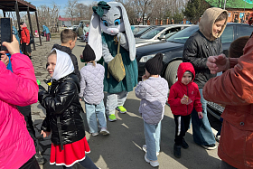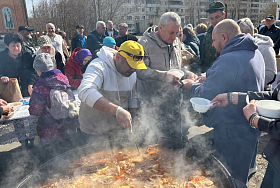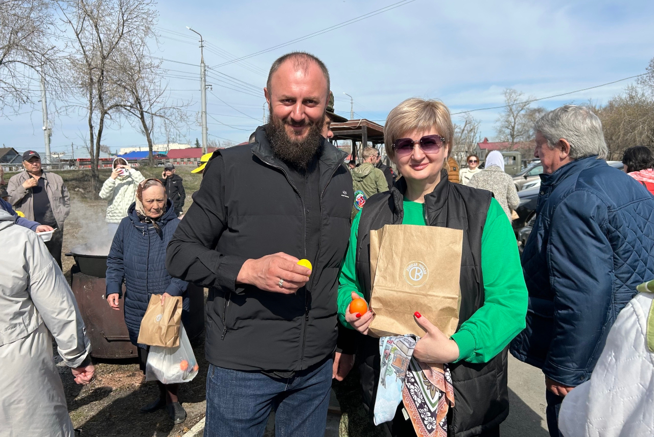 В день Святой Пасхи депутат также поздравила жителей микрорайона Рябково. Каждому участнику праздника подарили освящённые куличи, яйца, фрукты и угостили всех горячей шурпой из баранины.