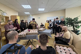 Стало уже доброй традицией вручать пасхальные угощения от зауральских предпринимателей бойцам, которые находятся на лечении и реабилитации в больницах города. Это только маленькая часть той благодарности, которую мы можем выразить нашим ребятам за то, что они тратят свои силы и здоровье на защиту Родины. В настоящее время на лечении в медицинском Центре Илизарова находятся 70 бойцов из разных уголков нашей страны. Девять участников спецоперации получают качественную медицинскую помощь в Госпитале ветеранов войн. Ветеранов поздравили с праздником Светлого Христова Воскресения и передали пасхальные куличи.