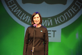 Елена Рыбакова вручила Почетную грамоту, Благодарственные письма и Благодарности Председателя Курганской городской Думы. И обратилась к собравшимся в зале педагогам, студентам, ветеранам и выпускникам. По ее словам, колледж прошел большой путь, наполненный сложившимися традициями и масштабными планами на будущее. Она поделилась, что тоже работала педагогам и знает, как непросто воспитывать и обучать молодых людей. У каждого преподавателя, по мнению депутата, доброе сердце и огромная душа. Она пожелала им крепкого здоровья и всего самого наилучшего. Студентам пожелала с высоко поднятой головой пронести звание медицинского работника, а также успехов в почетном деле спасения здоровья и жизни людей. Попросила ветеранов, как можно дольше передавать свой опыт молодым специалистам, а выпускников - продолжать лечение людей.