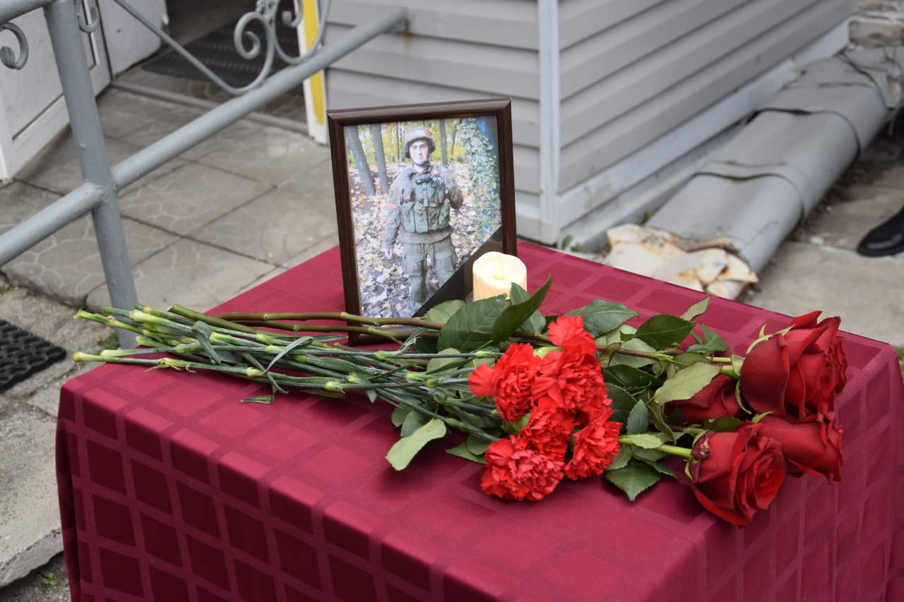 К участникам церемонии открытия мемориальной доски обратились депутаты. Сергей Клёстер, несмотря на то, что ему эмоционально было тяжело говорить, поблагодарил маму за воспитание сына, который в трудный час встал на защиту своей страны, и педагогов за вклад в воспитание бойца.