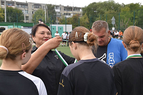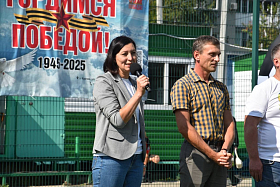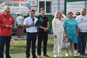 В этом году турнир посвящен Году защитника Отечества. И в качестве отдельной команды в соревнованиях участвовали участники спецоперации. Они сыграли с командой телекомпании Область 45. Пришла поздравить футболистов и вручить заслуженные награды по итогам финальной игры Алла Мирская. Она напомнила, что все лето на стадионе возле седьмой школы царила спортивная атмосфера. Это дерзкие, смелые и активные люди с удовольствием играли в футбол, который является самым массовым видом спорта. «Вы большие молодцы. Поздравляю вас с завершающим этапом. Удачи, активности, здоровья и бодрости духа», - пожелала Алла Николаевна.