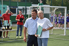 На турнире разыграли комплект наград женские команды. Юные участницы турнира проявили мужество и стойкость на пути к финалу. Церемонию награждения спортсменок посетил Дмитрий Усольцев, который уверен, что и курганские футболистки когда-нибудь смогут сыграть на лучших спортивных аренах страны. «Замечательно видеть то, что вы ни «на грамм» не уступаете мальчишкам. В первую очередь поздравляю победителей и призеров, а также всех участвующих. Не останавливайтесь на достигнутых результатах. Дерзайте дальше. Будем ждать от вас еще более и более высоких достижений», - обратился к футболисткам Дмитрий Сергеевич.