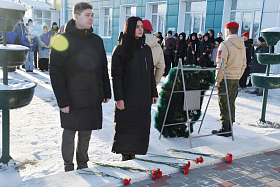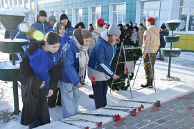 Участники школьного мероприятия почтили минутой молчания память о молодогвардейцах и возложили цветы к их памятнику, который расположен на территории общеобразовательной организации.
