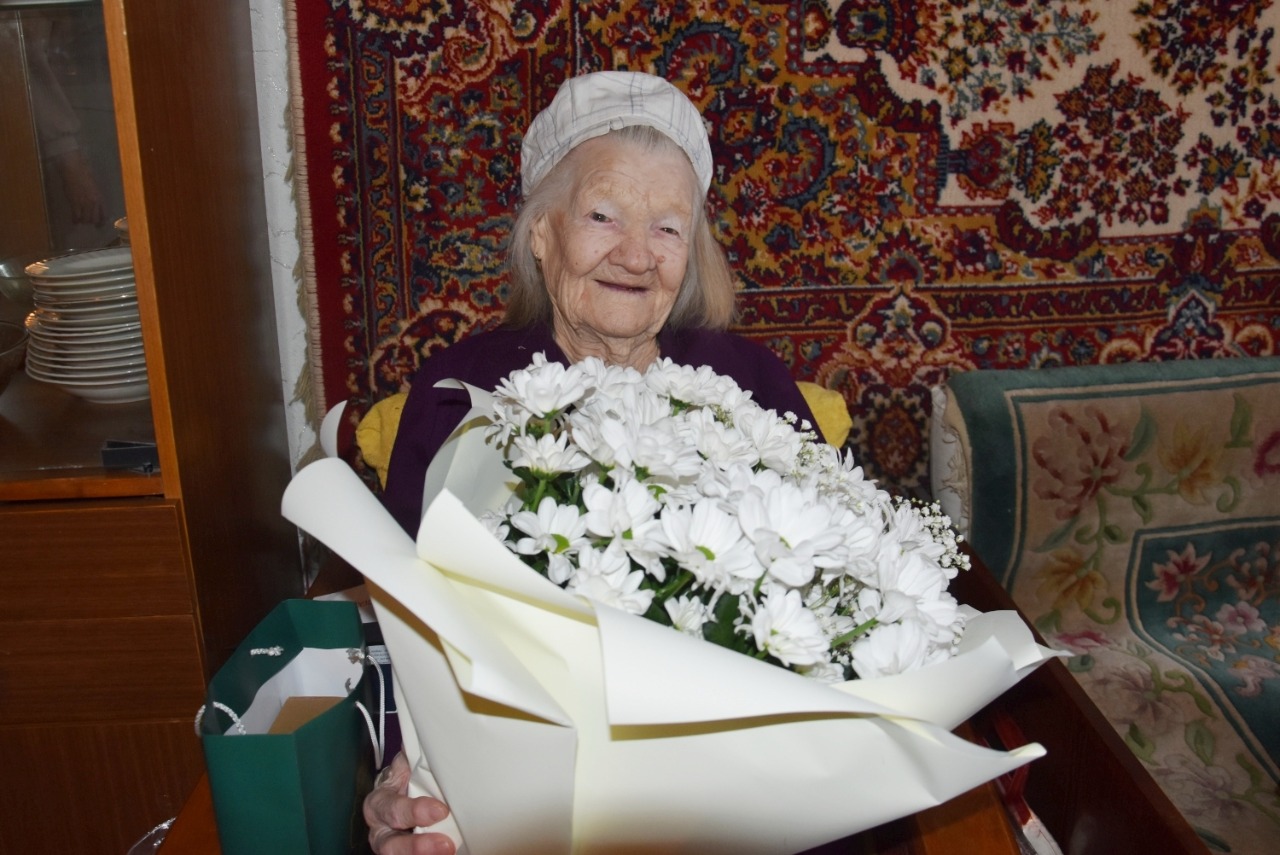 Любовь Алексеевна от всей души поздравила удивительную и мудрую, по ее словам, женщину. Поблагодарила за труд, послевоенное восстановление страны и вклад в Великую Победу, который она внесла, работая в тылу и преодолевая лишения и голод. Пожелала крепкого здоровья и хорошего настроения.