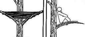 Окружные убежища, можно устраивать прямо на дереве, но есть один минус, при дожде вода, попадая с веток на дерево, будет заливать ваше убежище. Чтобы предотвратить это, можно ствол вместе с тканью обмотать верёвкой, или другим длинным тонким гнущимся материалом. |