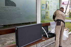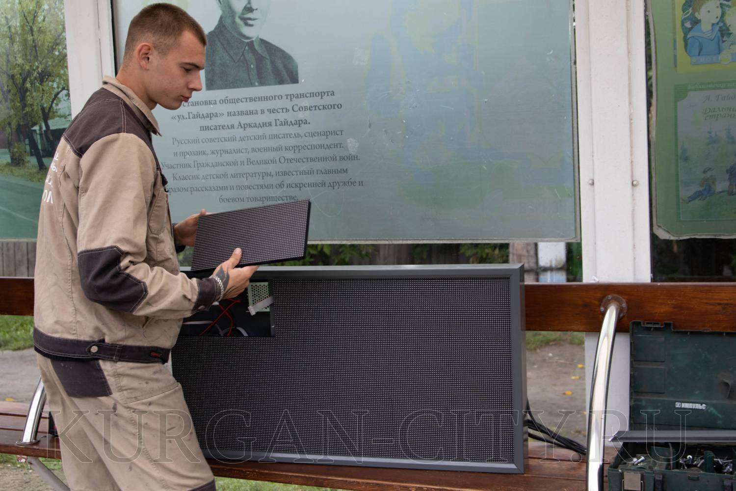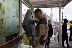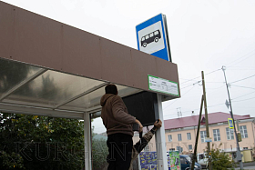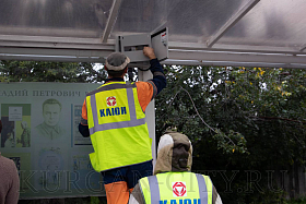 Сегодня в Кургане началась установка второй партии новых электронных табло на остановочных комплексах в количестве 10-ти штук. Табло монтируют на остановках города в микрорайонах Восточный, Рябково, Энергетики. Затем будут проведены пуско-наладочные работы.