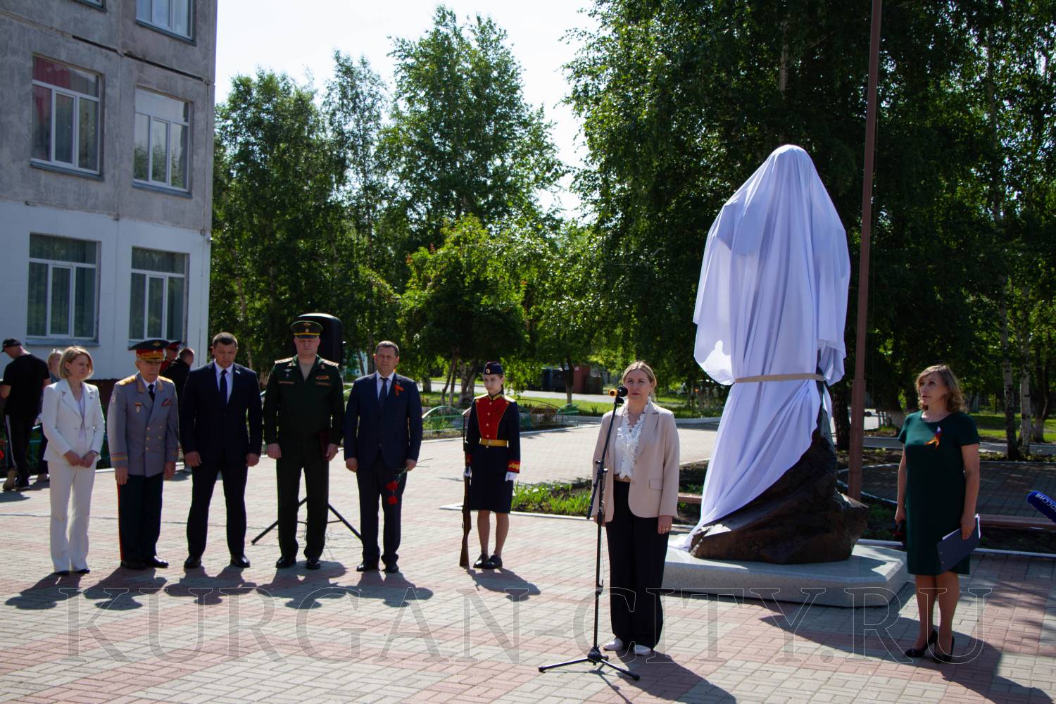 Приветствовала собравшихся заместитель губернатора Курганской области по социальной политике Наталья Кириллова, которая отметила, что открытие памятника – это знаковое мероприятие для региона и города. И напомнила, что накануне на малой родине нашего земляка, в Шумихе, открылась памятная доска нашему земляку, а также поблагодарила представителей Фонда имени Героя России Виктора Петровича Дубынина, приехавших сегодня на открытие памятника.