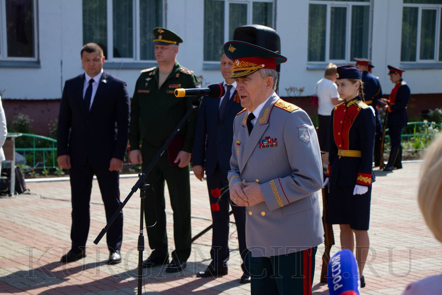 Такие люди, как Герой России, генерал армии Виктор Петрович Дубынин – это достояние государства. Жизнь Виктора Петровича – образец достоинства и мужества. Он с честью прошёл путь от курсанта танкового училища до генерала армии, начальника Генерального штаба Вооружённых Сил Российской Федерации, командовал легендарной 40-й армией в Афганистане, организовал достойный вывод советских войск из Польши, на годы вперёд определил ядерную политику государства и стратегию развития Вооружённых Сил России. Символично то, что церемония открытия бюста генерала проходит в Год защитника Отечества и 80-летия Победы в Великой Отечественной войне, в год присвоения Кургану почётного звания Города трудовой доблести. Это ещё раз подчёркивает важность сохранения памяти о наших выдающихся земляках. Об этом в своём приветствии сказал глава города Кургана Антон Науменко. Антон Анатольевич подчеркнул, что памятник станет напоминанием школьникам и жителям Заозёрного, всем курганцам об истории страны и её героях, на которых нужно равняться, и воспитывать на их подвигах подрастающее поколение.