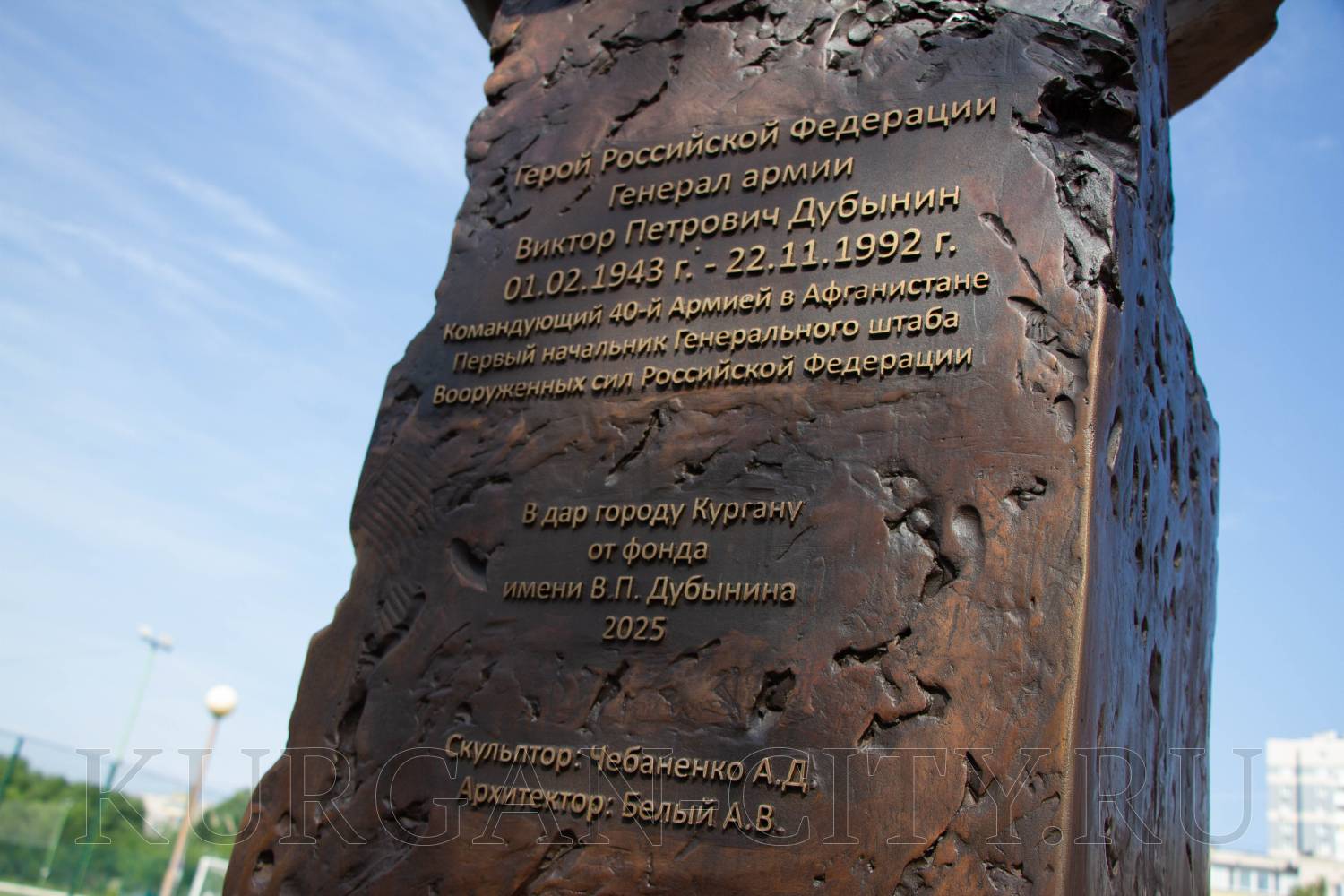 Сегодня в Кургане состоялся торжественный митинг, посвящённый открытию памятника нашему земляку, выдающемуся российскому военачальнику, Герою России, командующему 40-й армией в Афганистане, первому начальнику Генерального штаба Вооружённых Сил Российской Федерации, первому заместителю министра обороны РФ, генералу армии Виктору Петровичу Дубынину. Установка памятного знака прошла на территории школы №7.