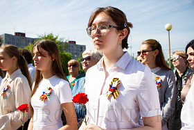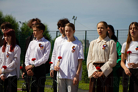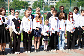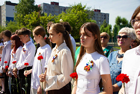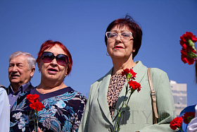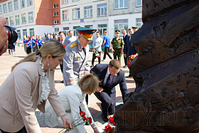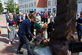 После торжественного открытия памятника Виктору Петровичу Дубынину собравшиеся возложили цветы.