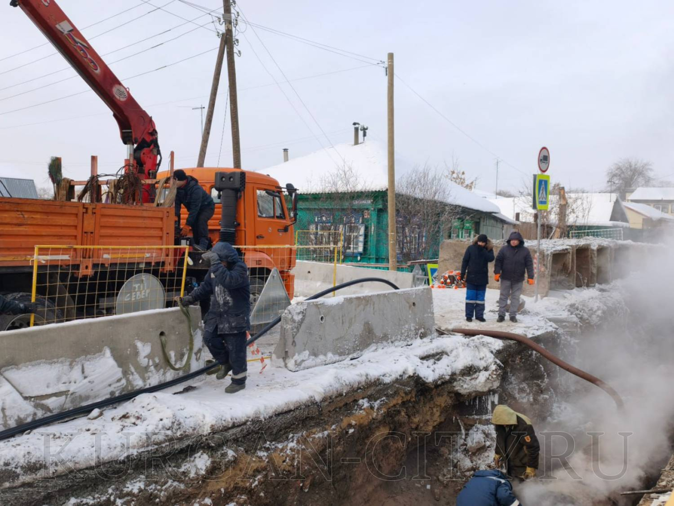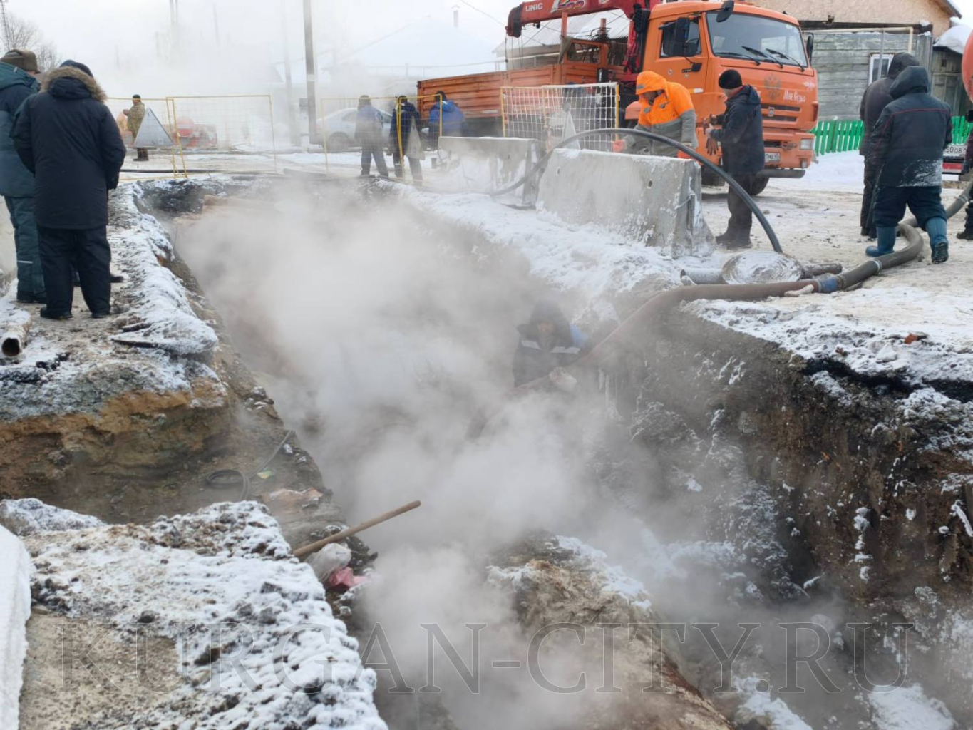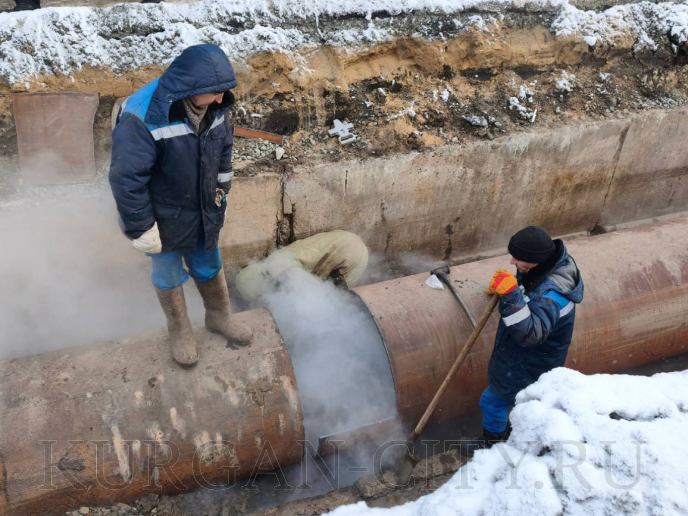 Бригады «Курганской генерирующей компании» проводят плановые работы по устранению дефекта на магистральном трубопроводе Север 2 по ул. Рабоче-Крестьянской.