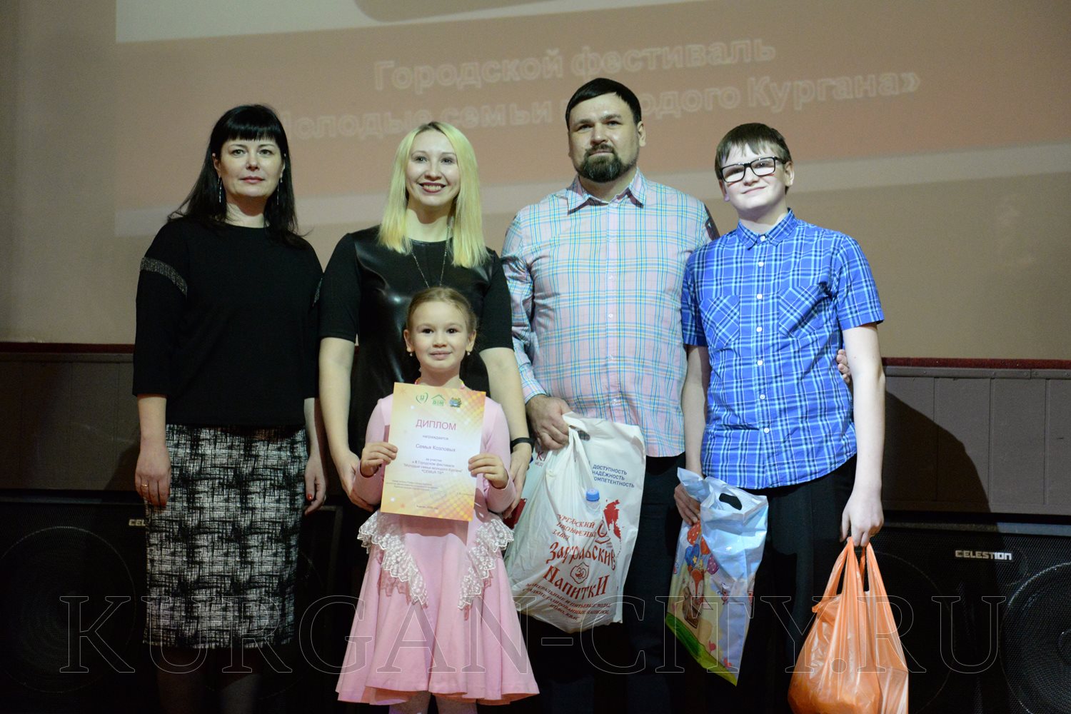 Главными героями праздника стали семьи Букоевых, Верховских, Двининых, Дрогуновских. Зайцевых, Зуевых, Карповых, Козловых, Левченко, Лисичкиных, Макаровых, Меньщиковых, Митрохиных, Никитиных, Петровых, Филипповых, Шевелёвых, Шишкиных и Васильевых. Их приветствовала заместитель Главы города Кургана, директор Департамента социальной политики Елена Ситникова. Елена Вячеславовна поздравила конкурсантов с окончанием фестиваля, пожелала им счастья, здоровья, семейного благополучия, а также вручила им дипломы об успешном прохождении проекта, призы и подарки от партнеров и друзей семейного праздника.