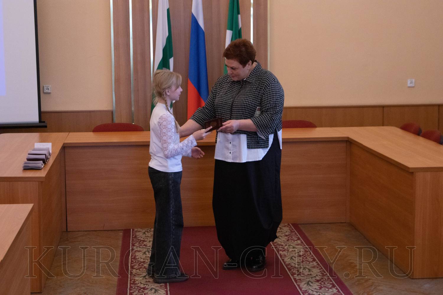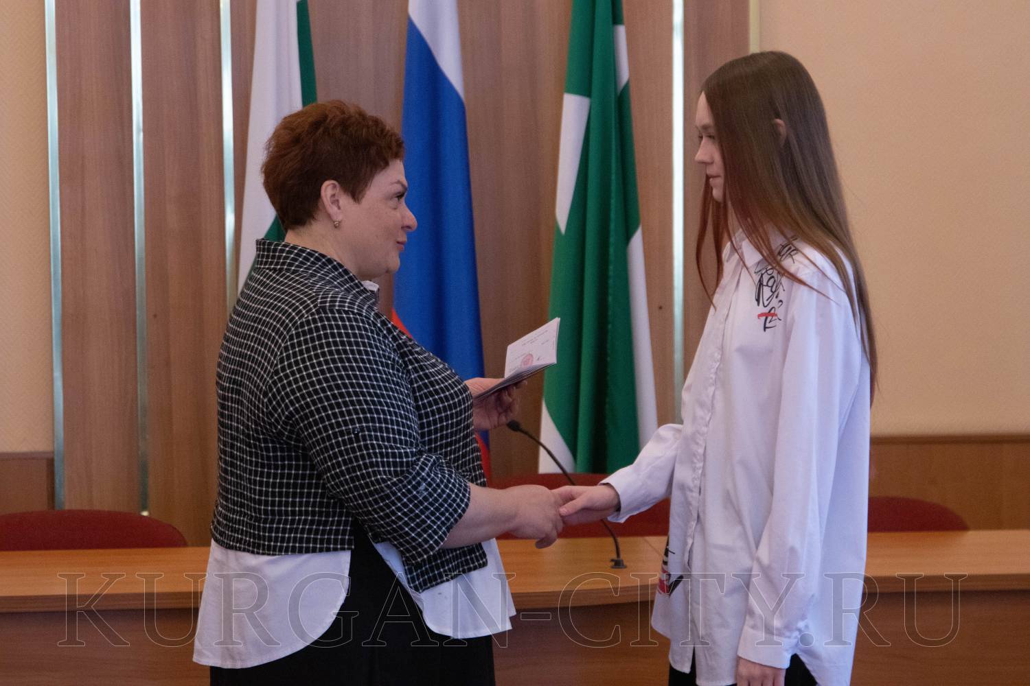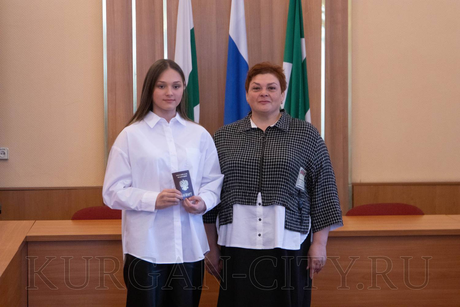 Сегодня в администрации города Кургана курганским школьникам, достигшим возраста 14-ти лет, торжественно вручили паспорта. Самый главный документ в своей жизни в этот день получили 11 новых граждан Российской Федерации. Заведующий отделом спорта департамента социальной политики администрации города Кургана Елена Белоногова поздравила ребят с получением самого главного документа в их жизни.