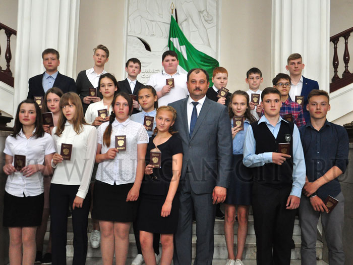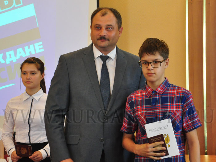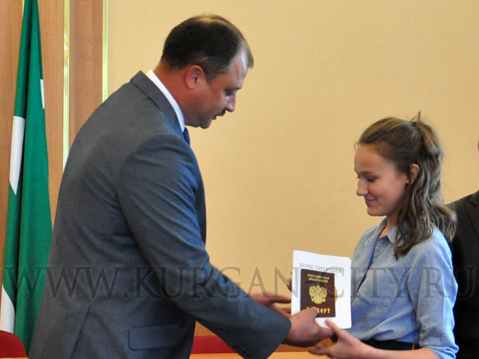 Торжественная церемония вручения паспортов юным курганцам состоялась в Администрации города. Глава Кургана Сергей Руденко поздравил ребят и их родителей с этим ответственным в их жизни событием и отметил, что паспорт является основным документом, удостоверяющим личность российского человека. Он также напомнил, что теперь вместе с правами гражданина России ребята получают и обязанности перед своей страной.