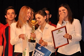 самая лучшая шутка оказалась у команды «Сочинение» гимназии № 19. Команда «Союз КПТ» Курганского промышленного техникума была отмечена поощрительным подарком за самое большое количество болельщиков в зале.
