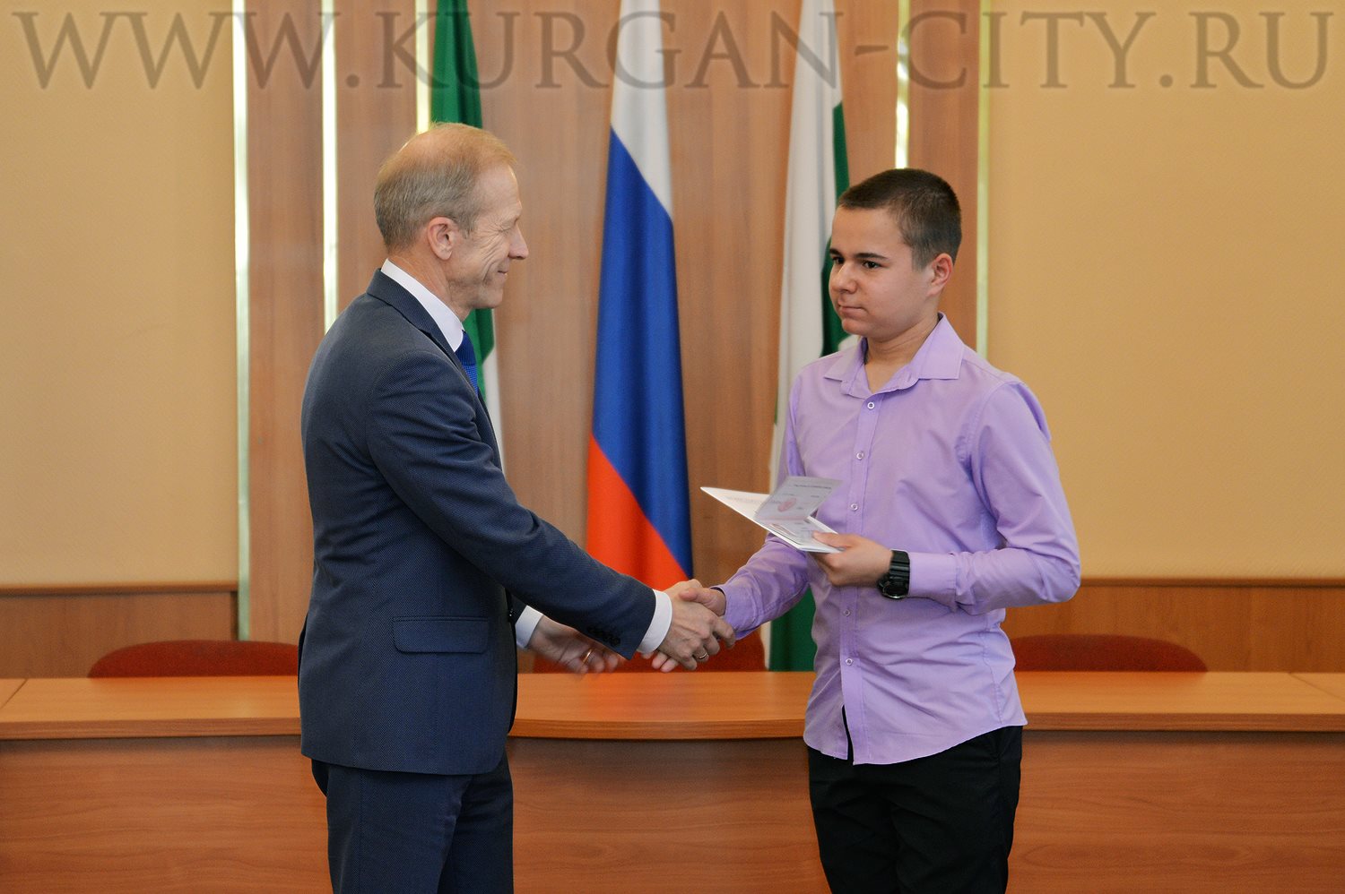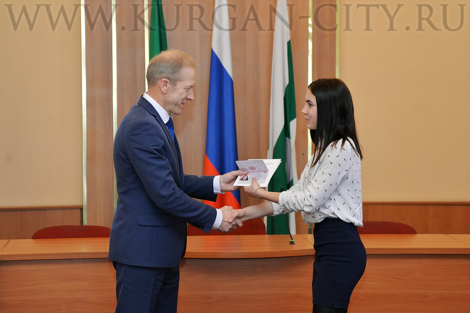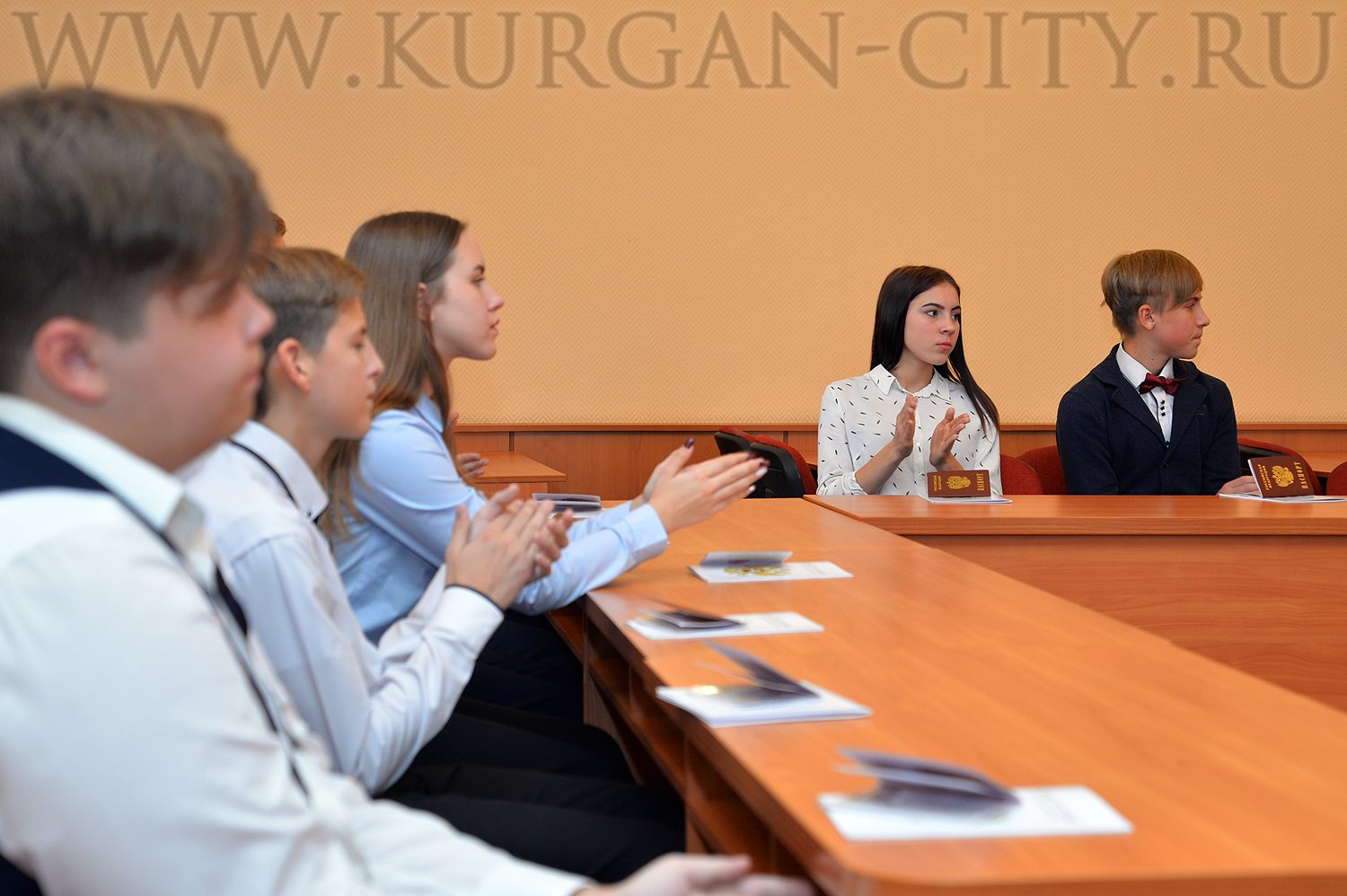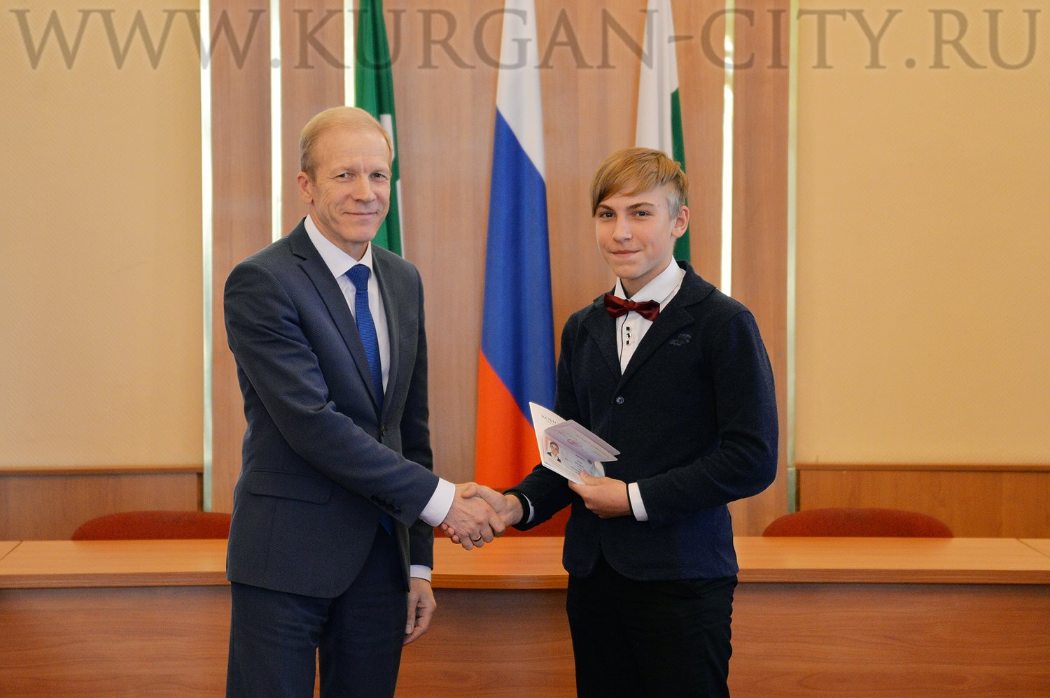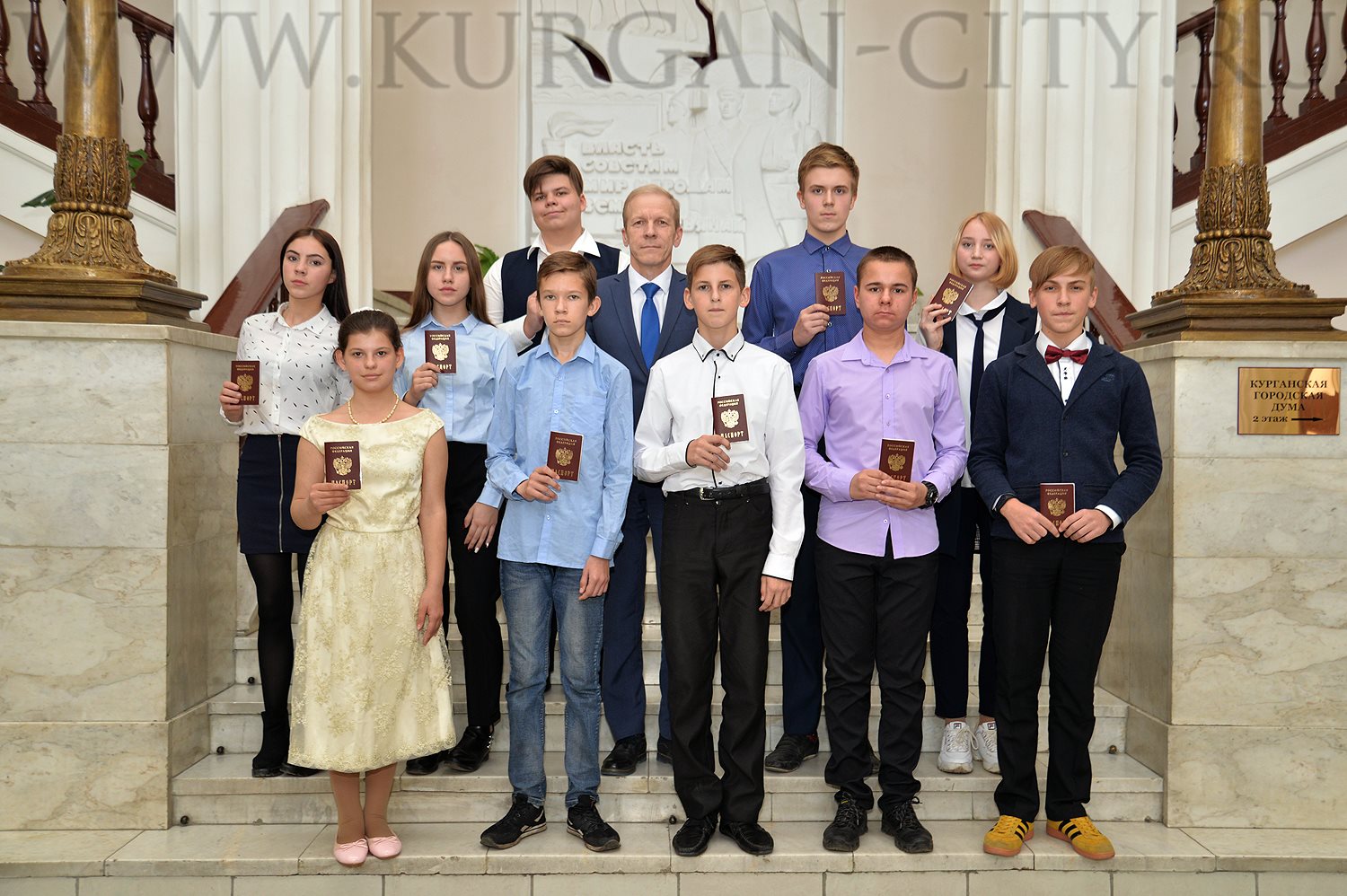 Сегодня в Администрации города Кургана состоялось торжественная церемония вручения паспортов гражданам России в рамках Всероссийской акции «Мы – Граждане России!». Первый в их жизни документам 10-ти курганским подросткам вручил первый заместитель Руководителя Администрации города Кургана Андрей Жижин.