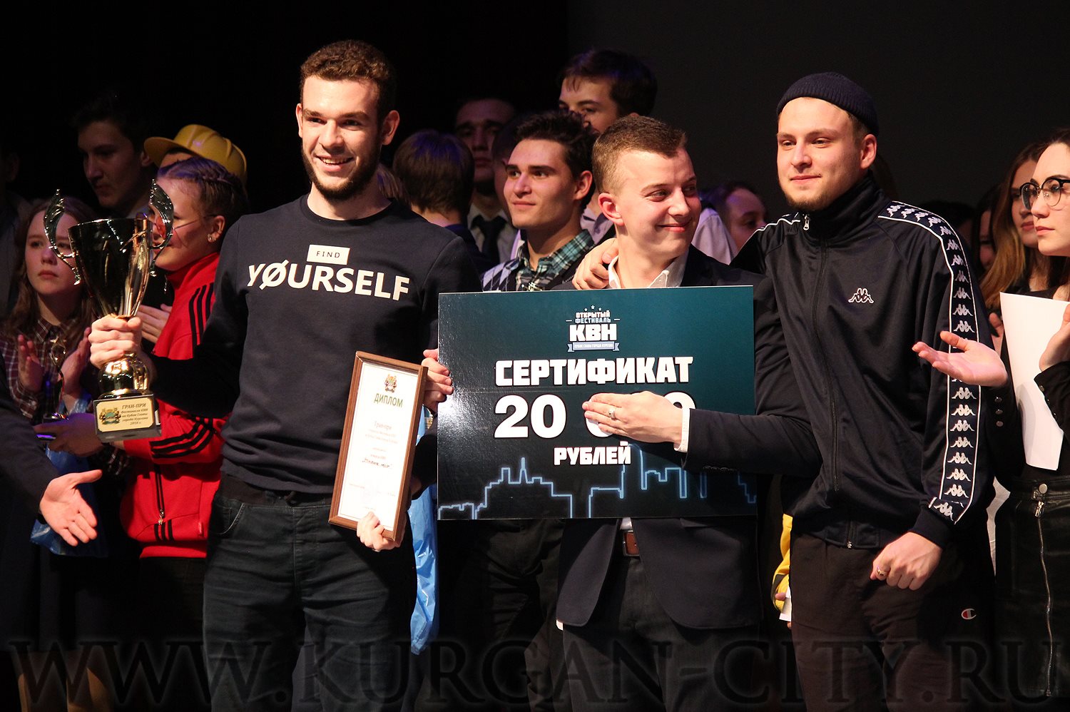 В завершении вечера все команды и их наставники получили дипломы за участие. Кроме этого, жюри конкурса вручило призы в нескольких номинациях. Так, «Лучшая актриса» – Екатерина Парамонова («Mad Fox», Курганский техникум сервиса и технологий); «Лучший актёр» – Александр Сергеев («Курган Land», СОШ № 56); «Лучшая шутка» – «Знание-сила», Лицей-интернат для одарённых детей.