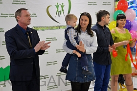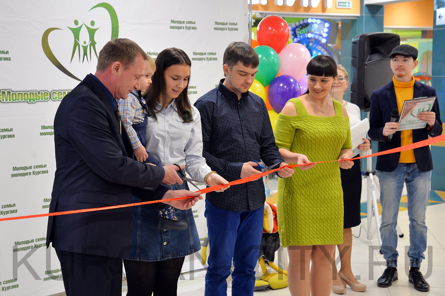 В знак открытия «Семейного театра» и старта 9-го городского фестиваля «Молодые семьи молодого Кургана» семья Буториных и заместитель Руководителя Администрации города Кургана, директор Департамента социальной политики Игорь Постовалов провели церемонию разрезания красной ленты.