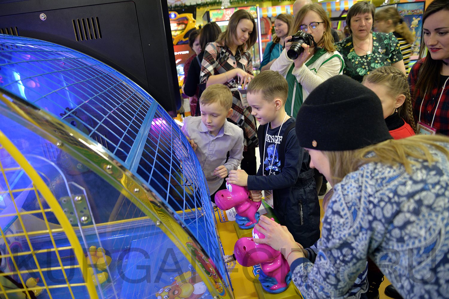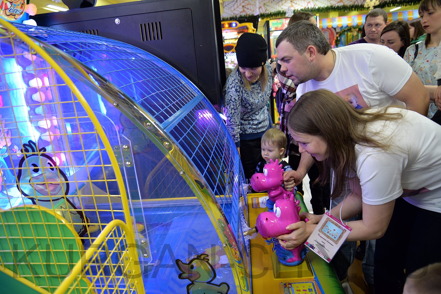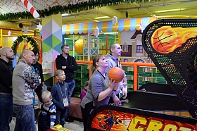 После завершения торжественной части, семьи отправились покорять первое конкурсное испытание – турнир по игровым автоматам. Курганцы забрасывали мячи в баскетбольную корзину, стреляли водяными пистолетами по «уткам» и старались попасть шариками в цель. Повсюду царила атмосфера веселья и радости. И взрослые, и дети с удовольствием проходили предложенные испытания и поддерживали друг друга. Каждая маленькая победа сопровождалась аплодисментами и восторженными криками.