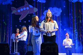 В фойе ДД(Ю)Т организованы подвижные игры и интерактивные площадки. Пришедших приглашают пройти регистрацию на «оранжевый авиалайнер» и удобно расположиться в зале. Лётная тематика проходит сквозной линией в течение всей концертной программы, и со сцены звучат поздравления.