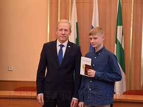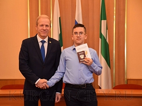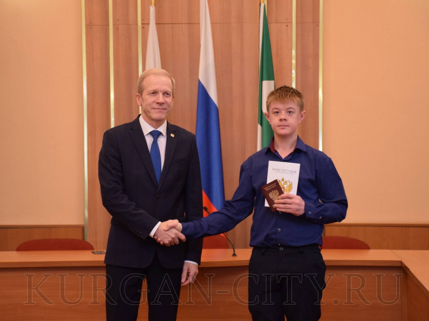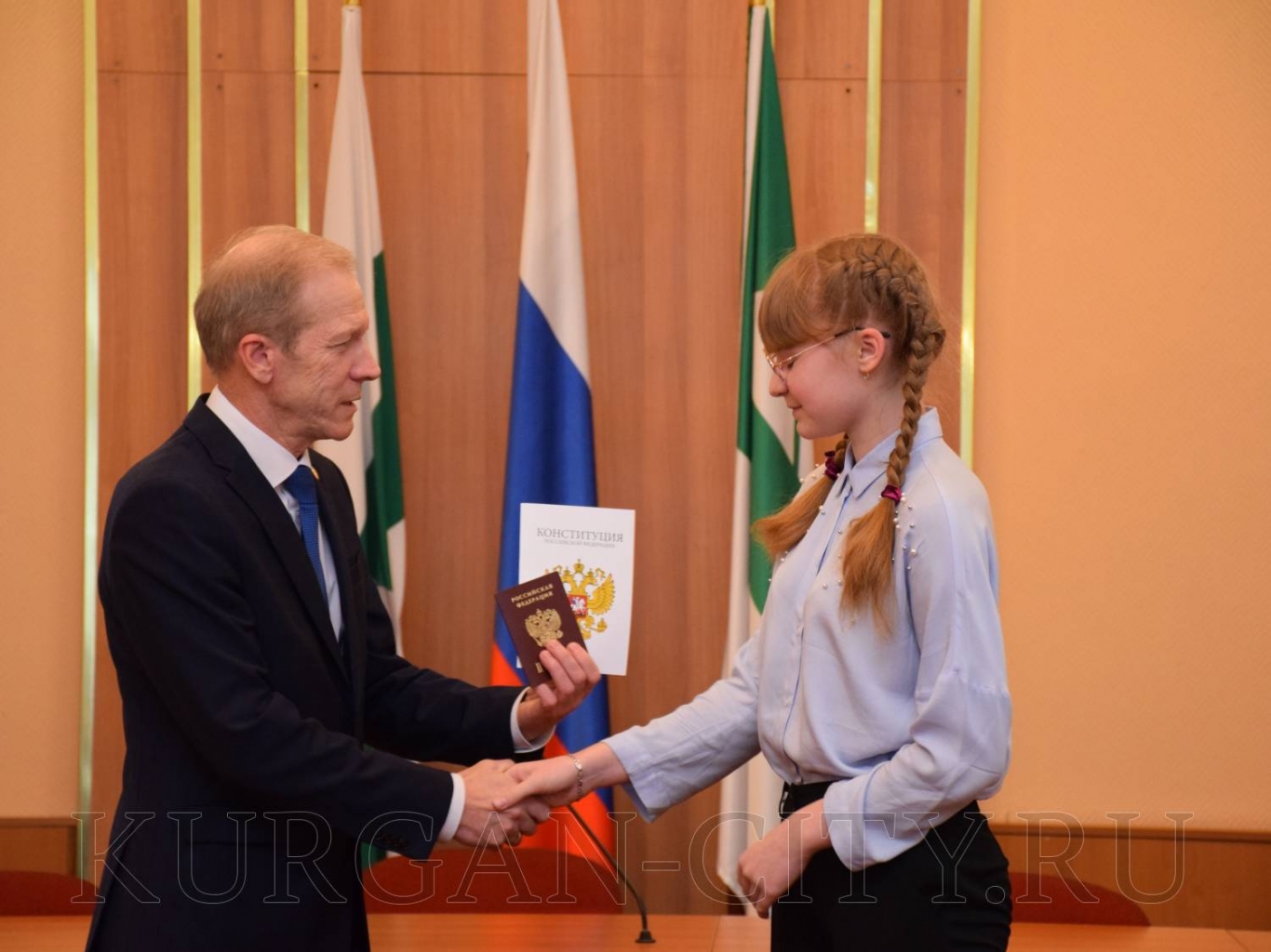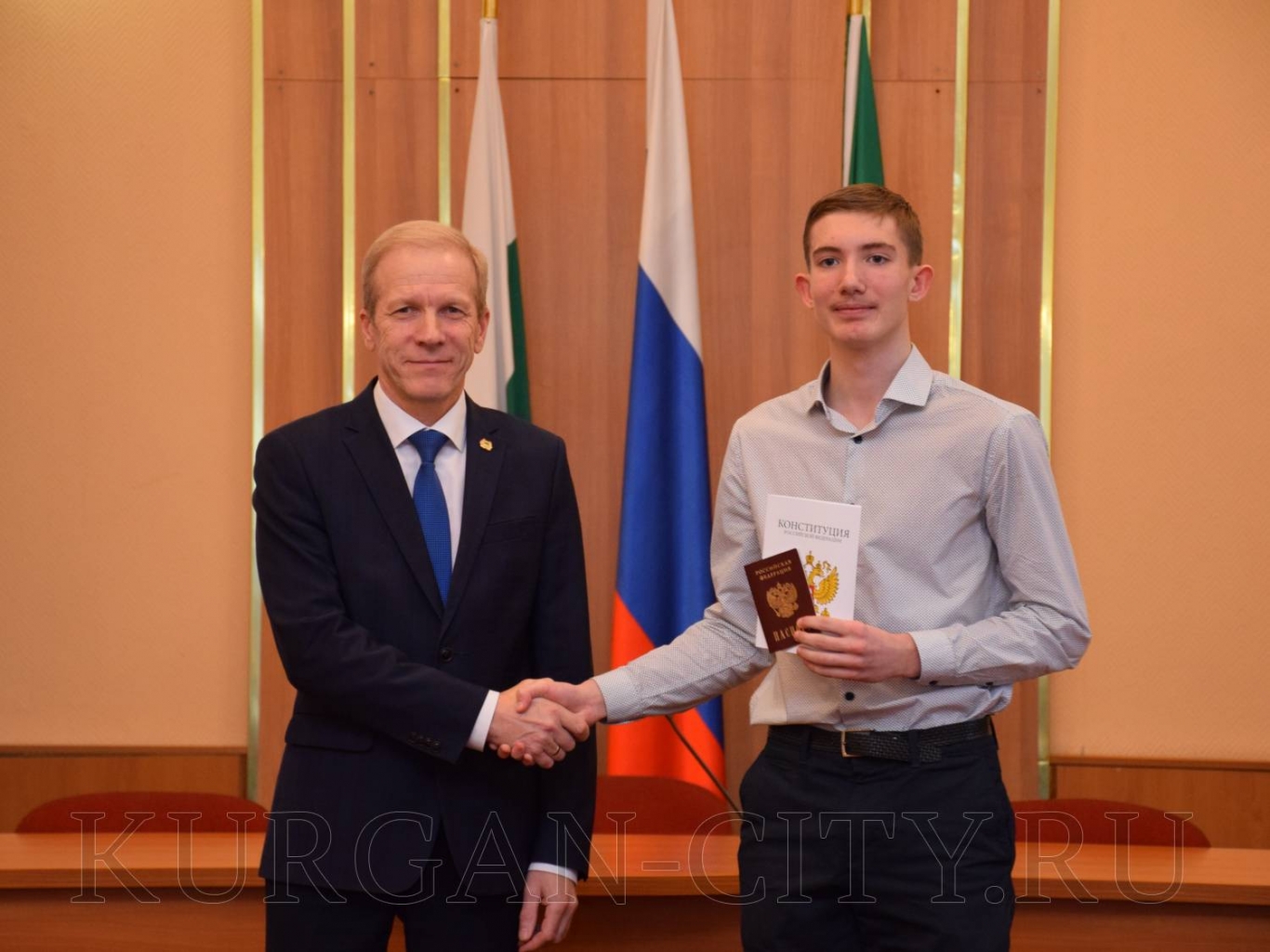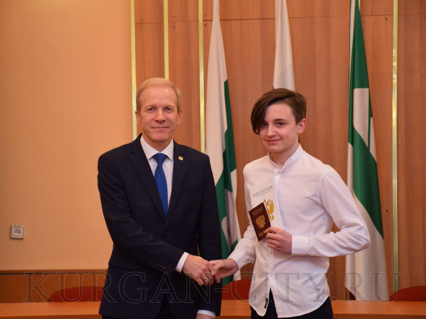 Сегодня в Администрации города Кургана состоялась торжественная церемония вручения паспортов юным курганцам в рамках акции «Мы – граждане России!». С важным событием ребят поздравил первый заместитель Главы города Кургана Андрей Жижин.