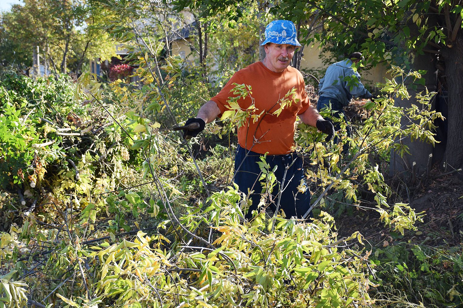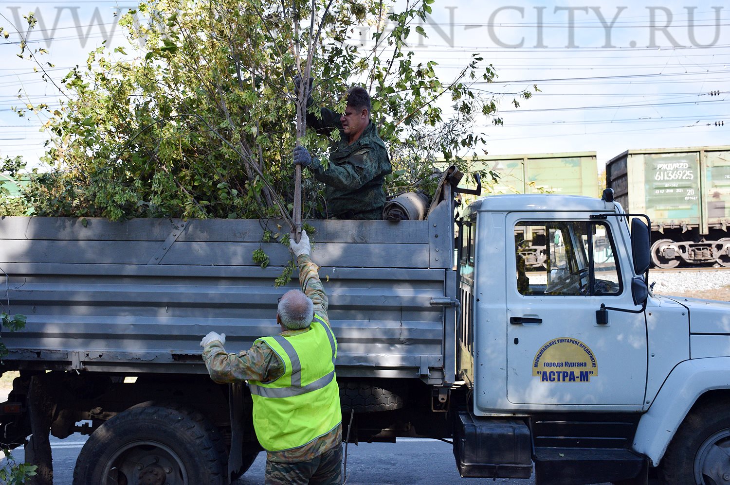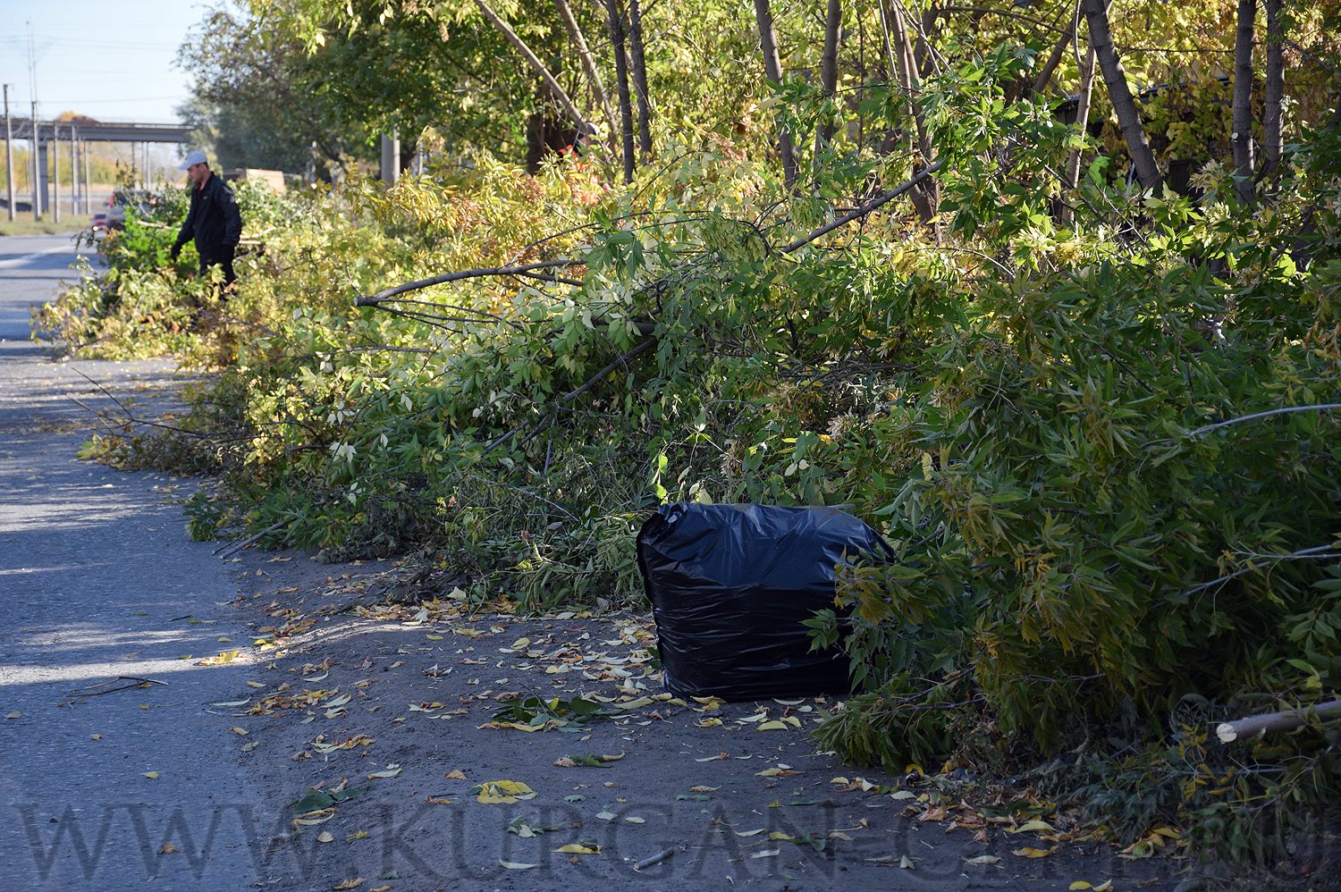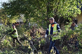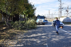 Сотрудники муниципальных учреждений «КурганЛес», «УДХиБ», «УКС», «Транспортное управление» и «Управление по делам ГО и ЧС» обрезали деревья и собирали мусор вдоль ул. Станционной на участке от ул. Пролетарской до ул. Бурова - Петрова.