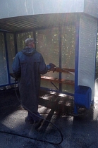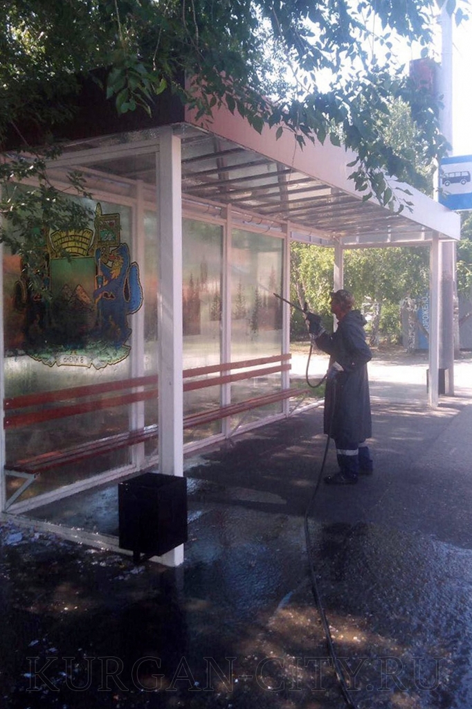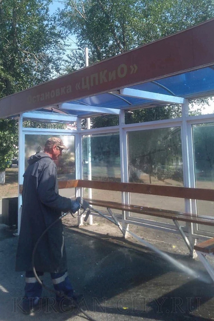 Курганские дорожники не только занимаются ремонтом и уборкой улиц, но и очищают остановочные комплексы. В течение июля рабочие МУП «СДП» привели в порядок и помыли более 260 павильонов ожидания.