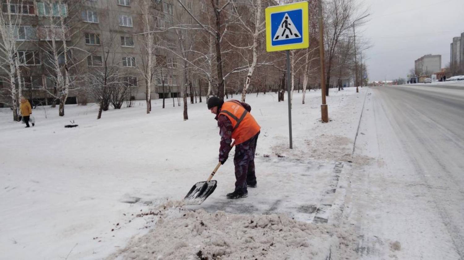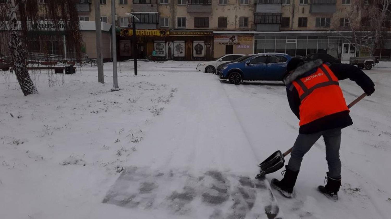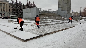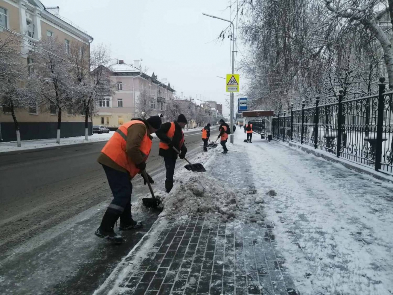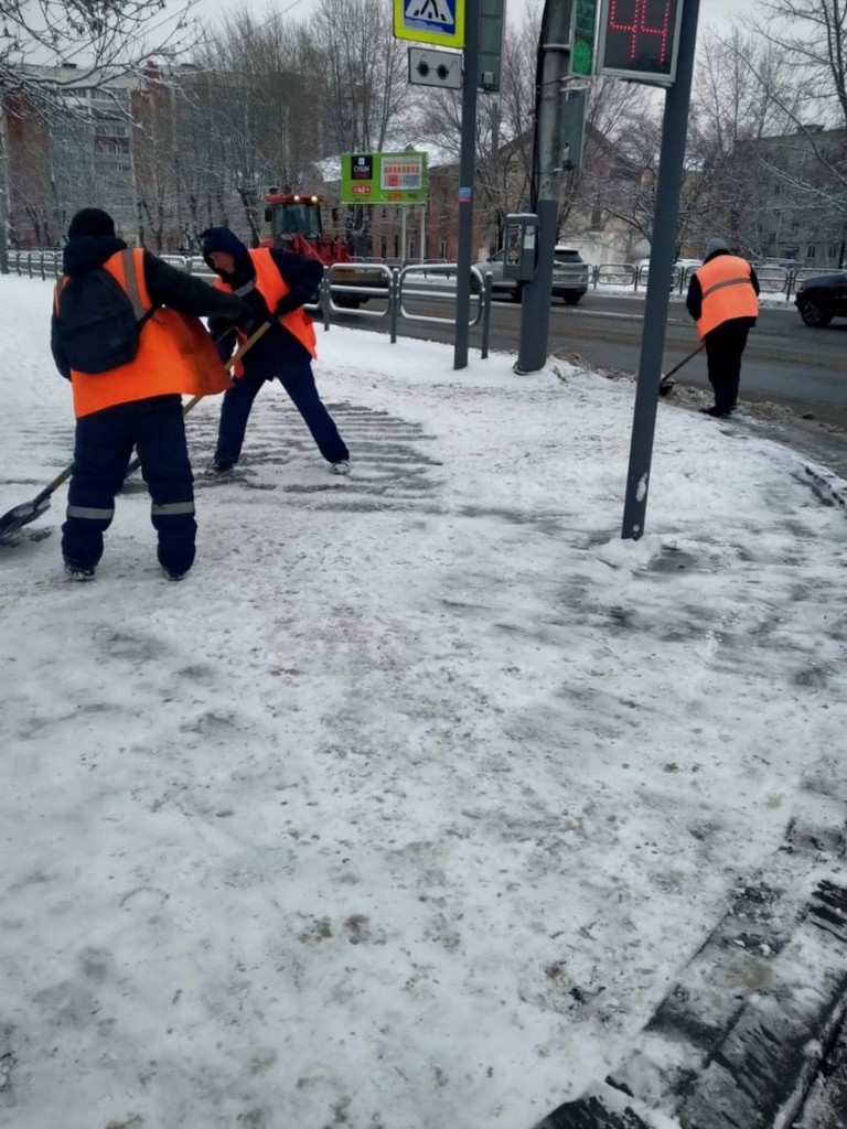 В Кургане снег. Ночью дорожники расчищали проезжую часть, а с раннего утра коммунальные службы работают на расчистке пешеходной зоны.
