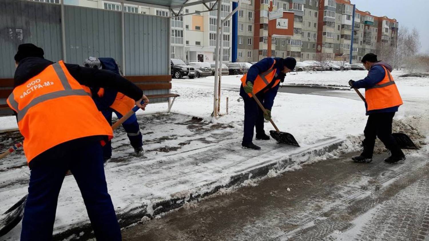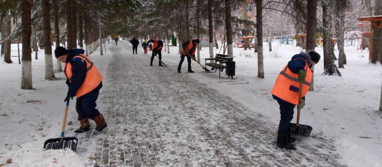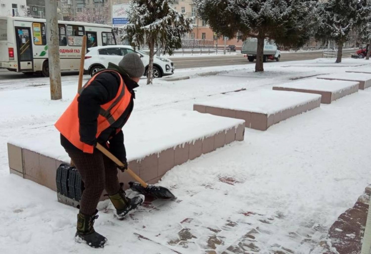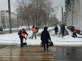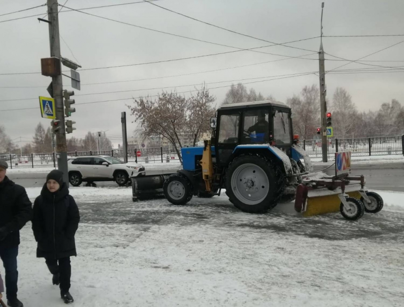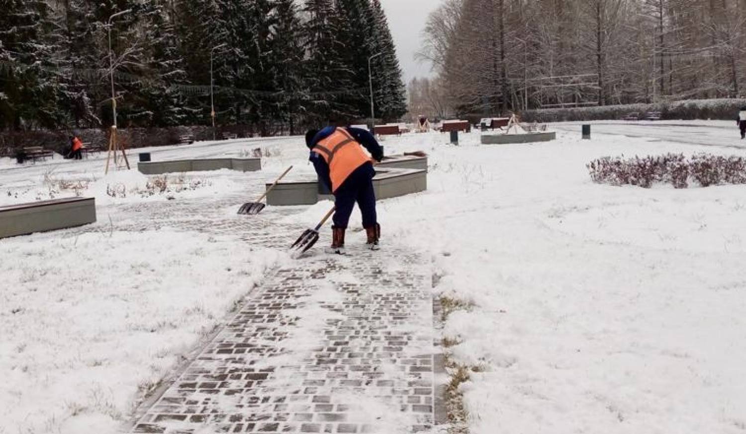 В Кургане снег. Ночью дорожники расчищали проезжую часть, а с раннего утра коммунальные службы работают на расчистке пешеходной зоны.