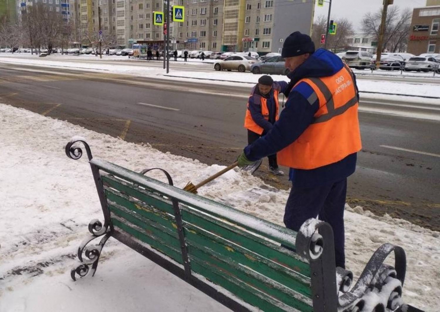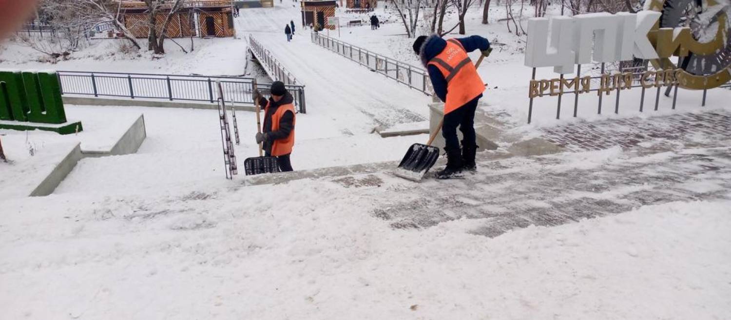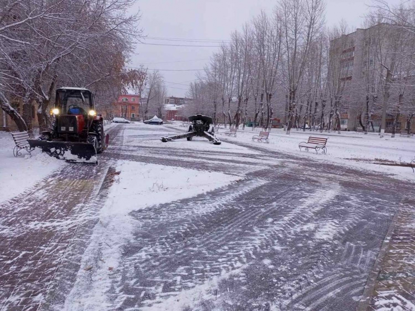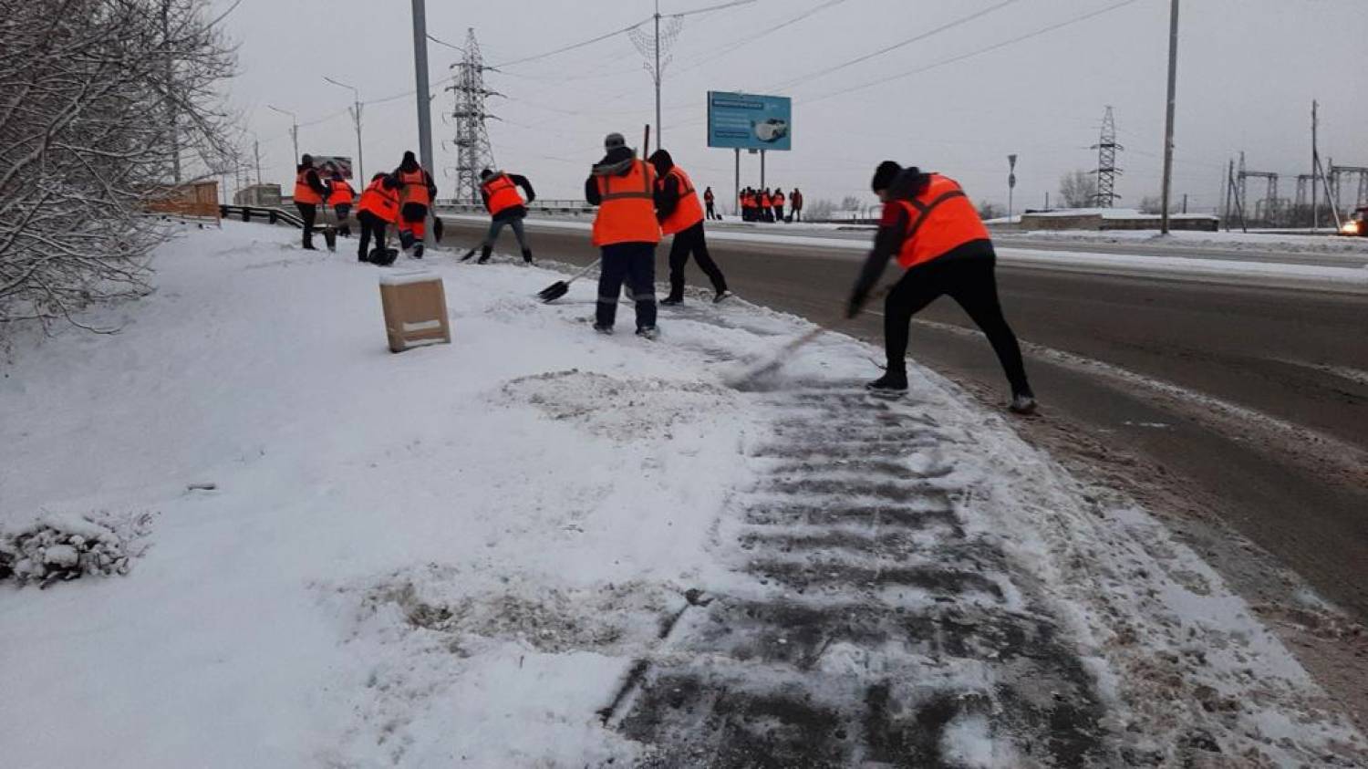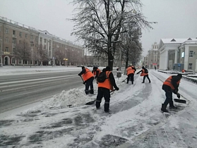 В Кургане снег. Ночью дорожники расчищали проезжую часть, а с раннего утра коммунальные службы работают на расчистке пешеходной зоны.