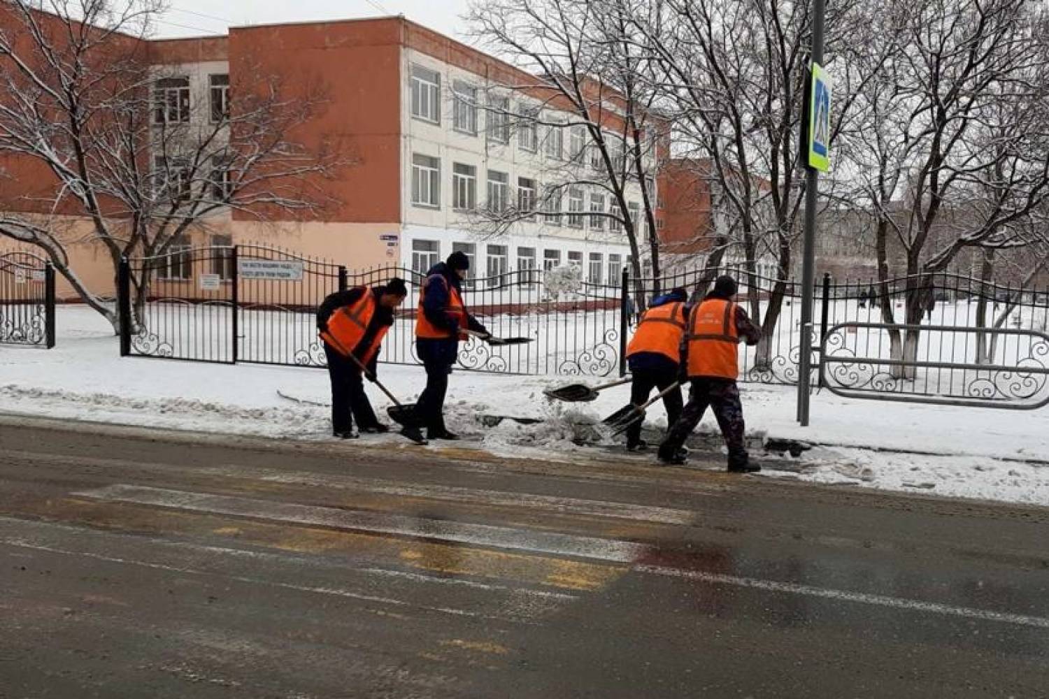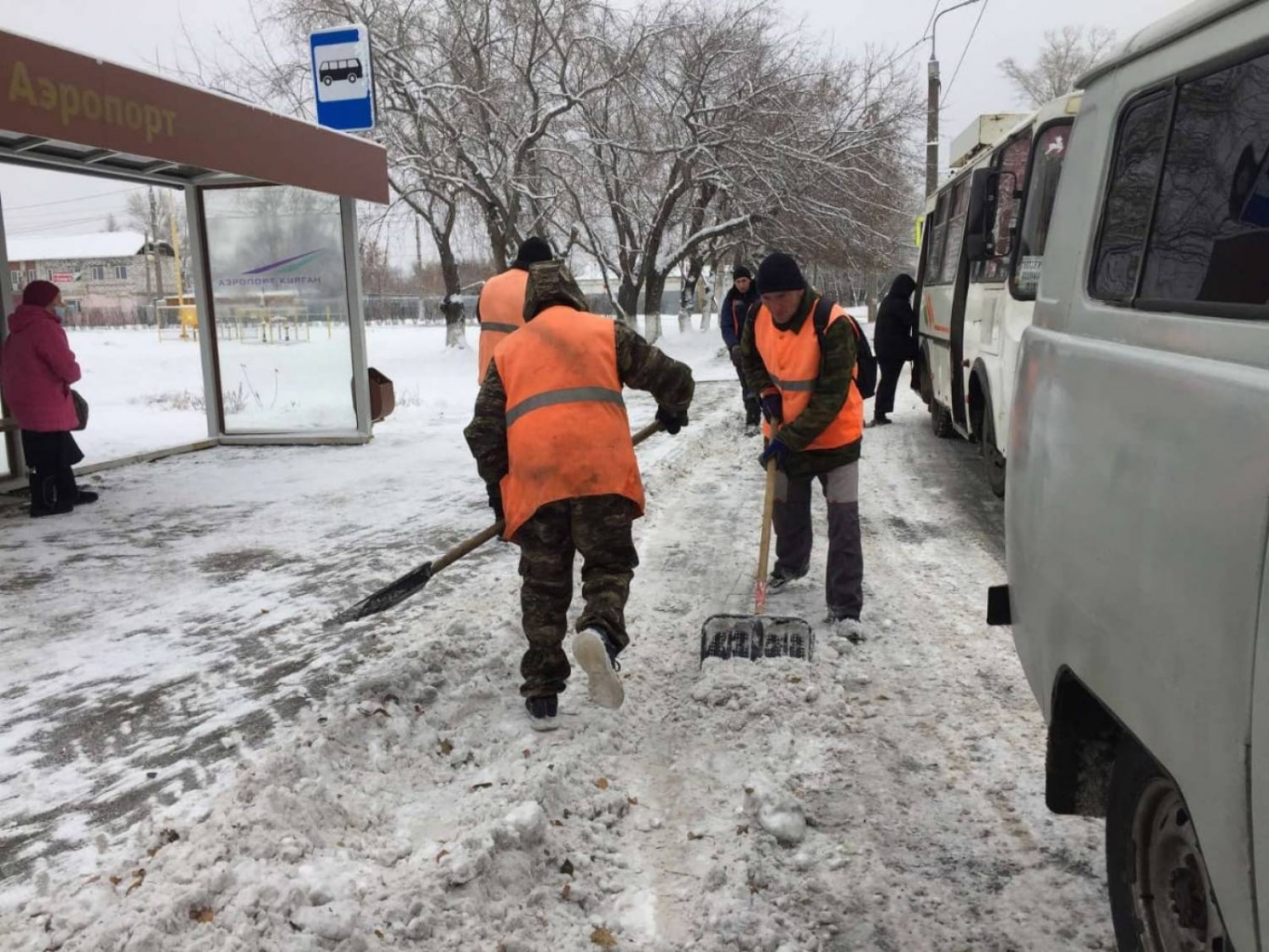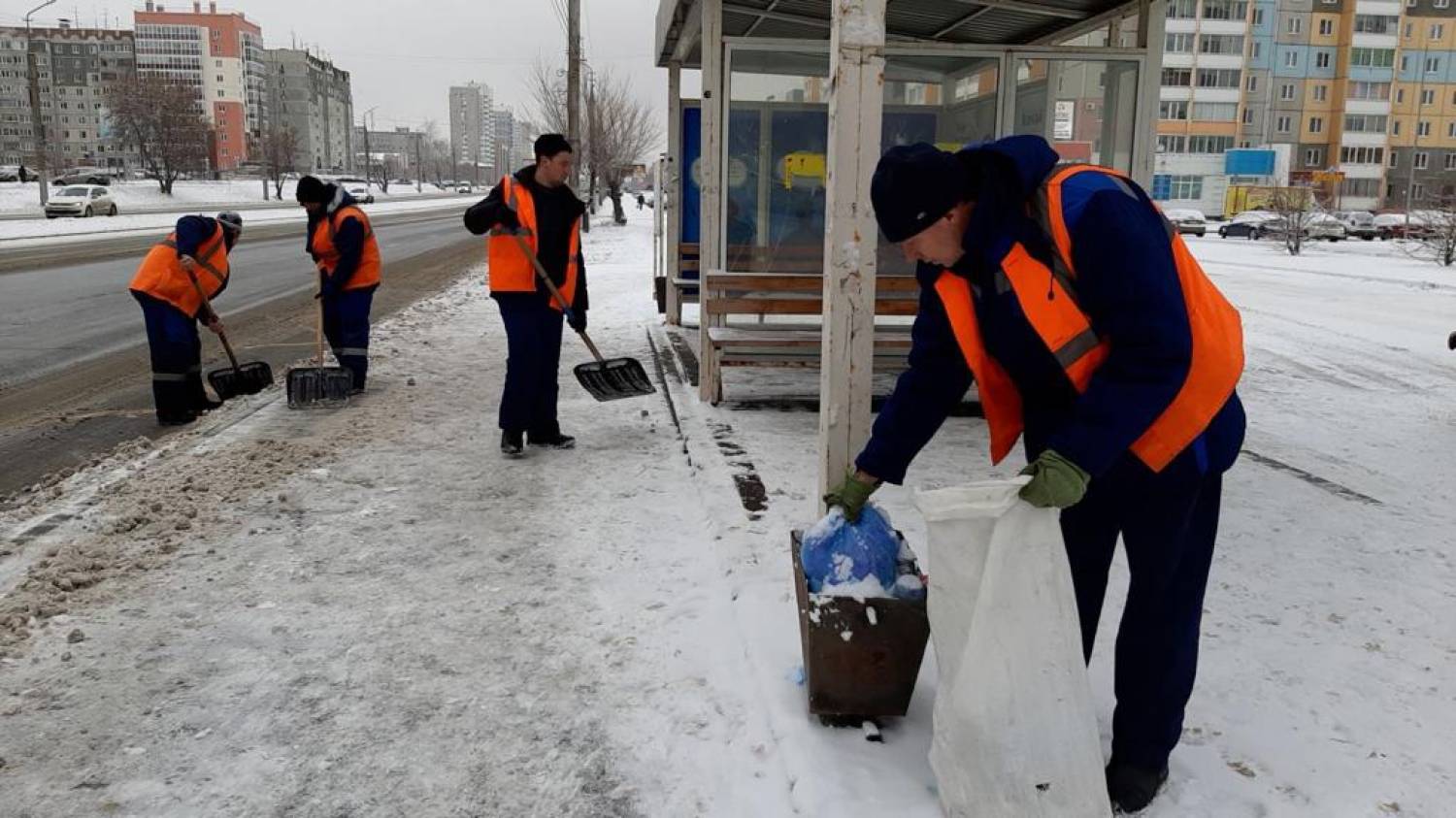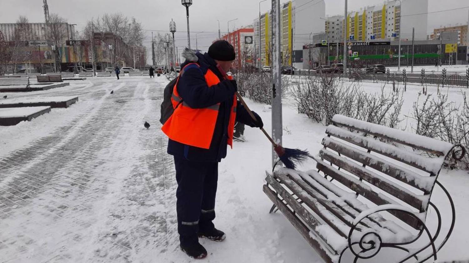 В Кургане снег. Ночью дорожники расчищали проезжую часть, а с раннего утра коммунальные службы работают на расчистке пешеходной зоны.