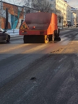 На улице Б.-Петрова - по одной стороне (от путепровода на Корвете до автоцентра «Рено») выполнялись механизированные работы по перемещению снежного вала. Также по закрепленным маршрутам осуществлялось подметание улично-дорожной сети.