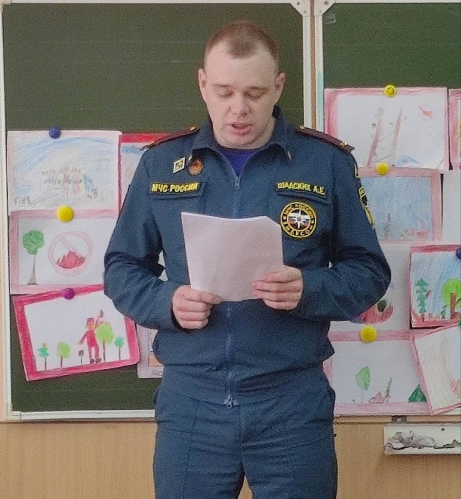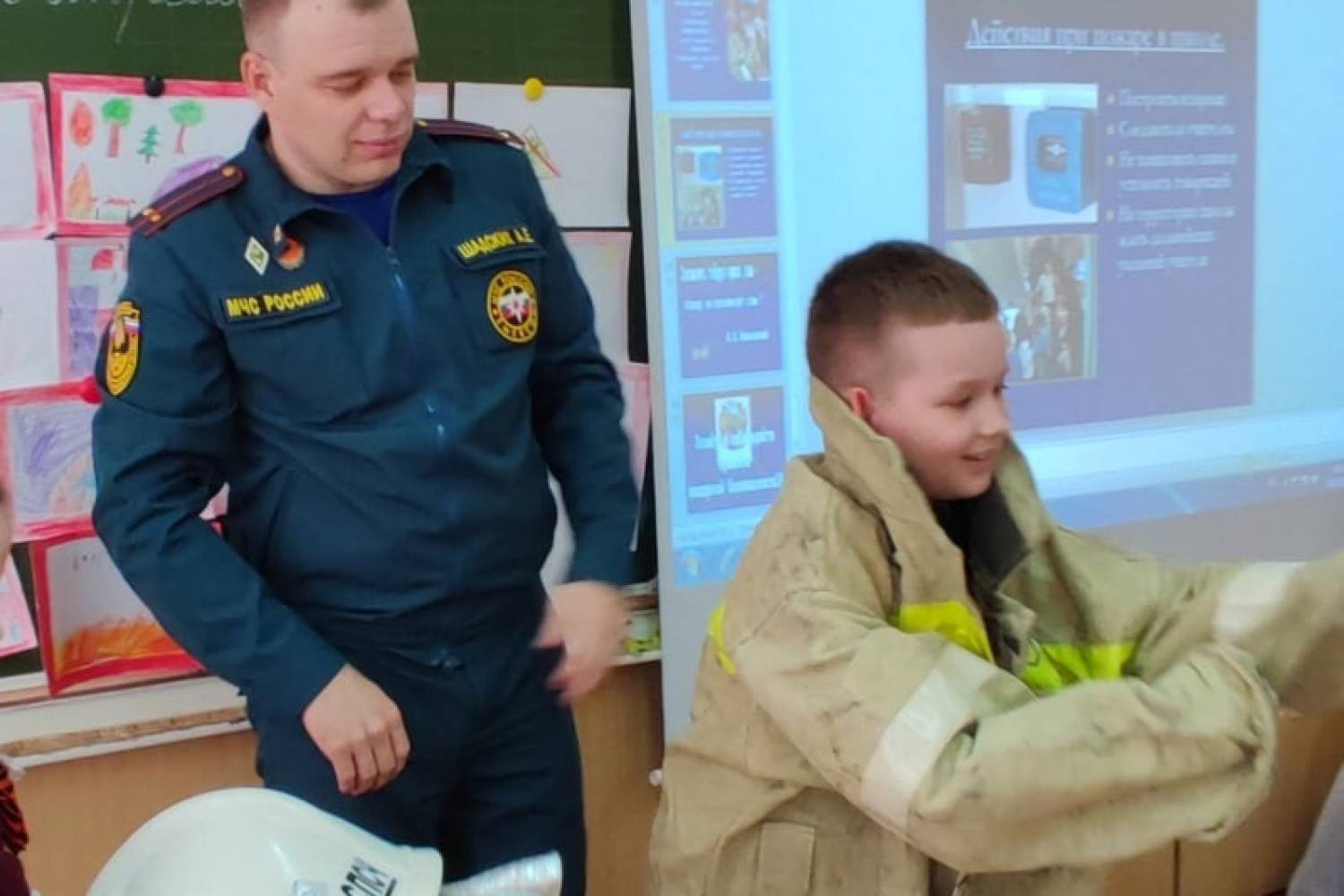Во 2 «Г» классе гимназии № 19 прошла встреча с сотрудником ГУ МЧС России по Курганской области, который провел беседу с учащимися, рассказал о профессии пожарного, показал обмундирование, вручил ребятам грамоты за участие в конкурсе рисунков. Дети примерили форму огнеборца. Ребята подготовили и самостоятельно раскрасили памятки – буклеты для родителей «Чтобы не было пожара, чтобы не было беды».