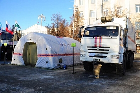 Отметим, что в течение сегодняшнего дня в рамках учебно-методического сбора на центральной площади работала выставка специализированной техники МЧС России.