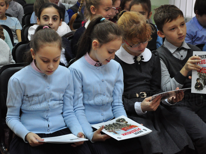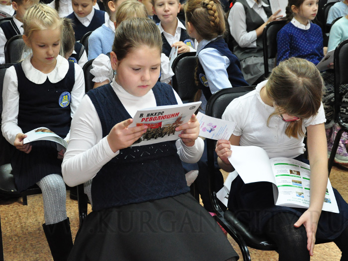 Книга «В вихре революции» вышла в юбилейный для революции год – год ее столетия. Какие события происходили в России и в Кургане 100 лет назад, кто был её идейным вдохновителем, и какие здания города являются хранителями этой истории – обо всём этом на презентации юным читателям рассказали сотрудники библиотеки им. Н. Островского.