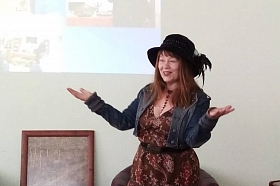 На выставке в библиотеке были представлены вышивки Валентины Переваловой и картины Маргариты Лео (масло, акварель, живопись листьями). Маргарита Лео – курганская художница и поэтесса. Уже 19 лет занимается творчеством, пишет стихи, эссе и рассказы.