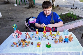 В течение мероприятия детей веселили две ростовые куклы. Кроме того, на празднике впервые состоялась ярмарка-продажа изделий, которые ребята сделали своими руками. Это поделки из бисера, кожи, шерсти, глиняные игрушки, оригами и прочие декоративные изделия.