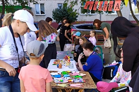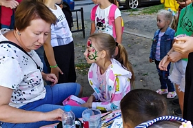Педагог Дома детского творчества «Синяя птица» Светлана Захарова провела мастер-класс по аквагриму. Ее коллега Татьяна Багина, победительница конкурса «Туристический сувенир Кургана», обладательница звания «Мастер золотые руки» подготовила для ребят мастер-класс по лепке глиняной игрушки. Поделки, изготовленные детьми, обожгут специалисты Дома детского творчества «Синяя птица», после чего ребята их самостоятельно раскрасят.