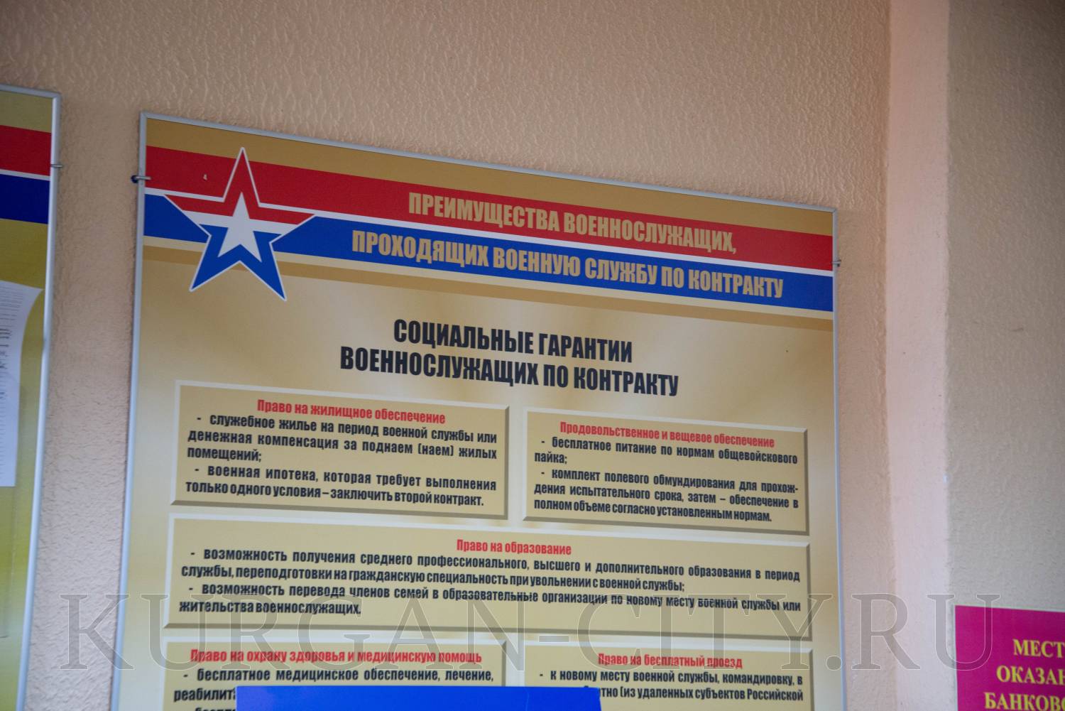 Для поступления на службу по контракту гражданину необходимо обратиться в пункт отбора граждан на военную службу по контракту Курганской области, который находится в Кургане по адресу: ул.Пархоменко, 61, стр.1. При себе необходимо иметь документы: паспорт, военный билет, если кандидат служил (если не служил, военный билет будет оформлен в дальнейшем), СНИЛС, ИНН и банковские реквизиты. Далее на пункте отбора кандидату предстоит пройти медицинскую комиссию, которая в дальнейшем принимает решение о категории годности к службе. Затем начинается оформление личного дела, назначается воинская должность и определяется часть, куда поедет служить человек. Последний этап - инструктаж. По словам инструкторов пункта отбора, у людей возникает немало вопросов касательно службы, денежных выплат, и в целом процесса прохождения службы.