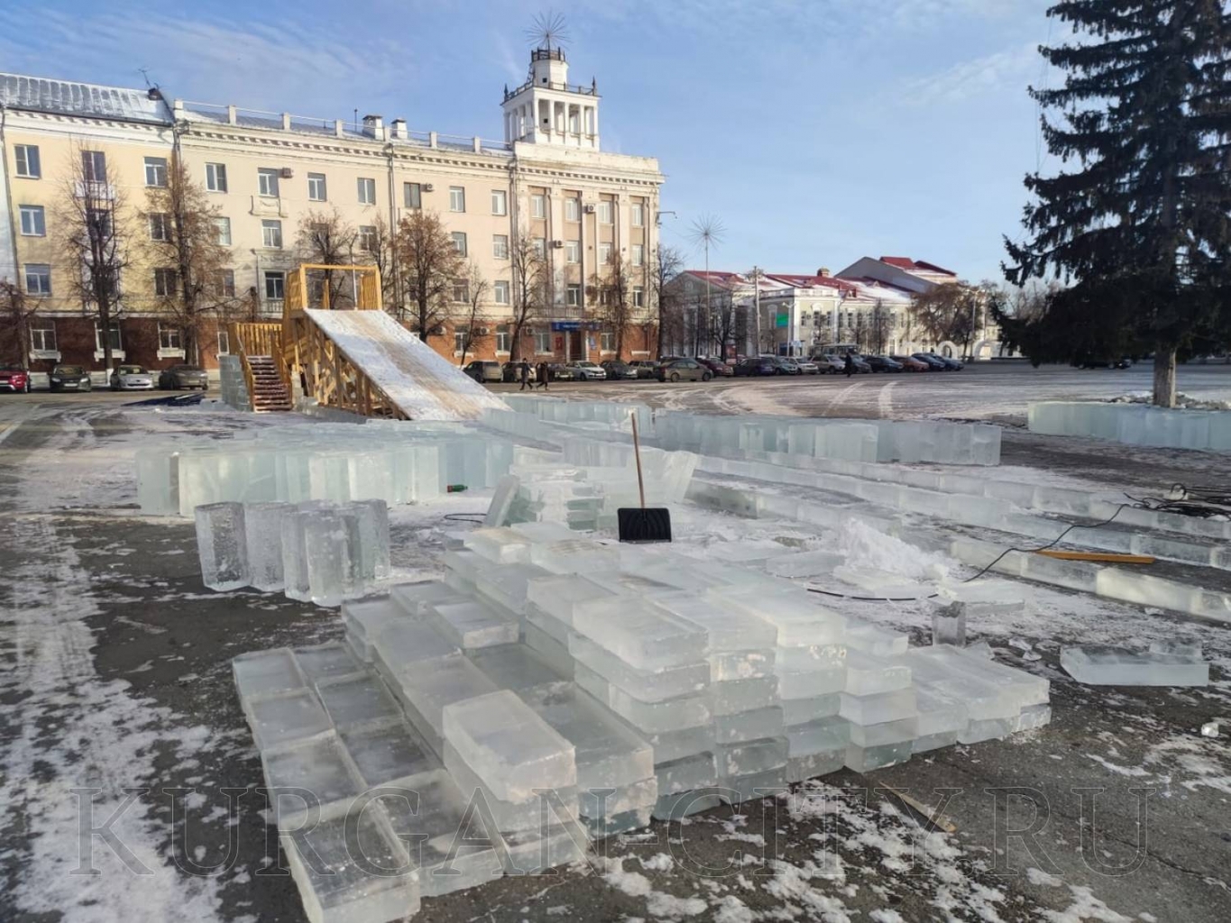 В этом году на площади для маленьких курганцев будет сделано три горки. Одна деревянная, ее каркас уже смонтирован, и две изо льда – сейчас рабочие трудятся над их созданием. Лед уже завезен. Мастерам осталось проявить немного фантазии, а малышам – готовить санки и ледянки.