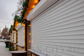 Рядом с торговыми прилавками в ярмарочных домиках ежедневно с 12.00 до 22.00 часов можно будет купить продукцию общественного питания и товары новогоднего ассортимента.