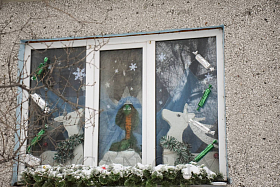 А сколько выдумки вкладывают горожане в оформление своих окон, балконов и лоджий! Нужно только внимательно приглядеться, пройтись вечером и увидеть сотни мерцающих огоньков, среди которых находятся лежачий Снеговик, разноцветные длинные змеи и, конечно, Деды Морозы.