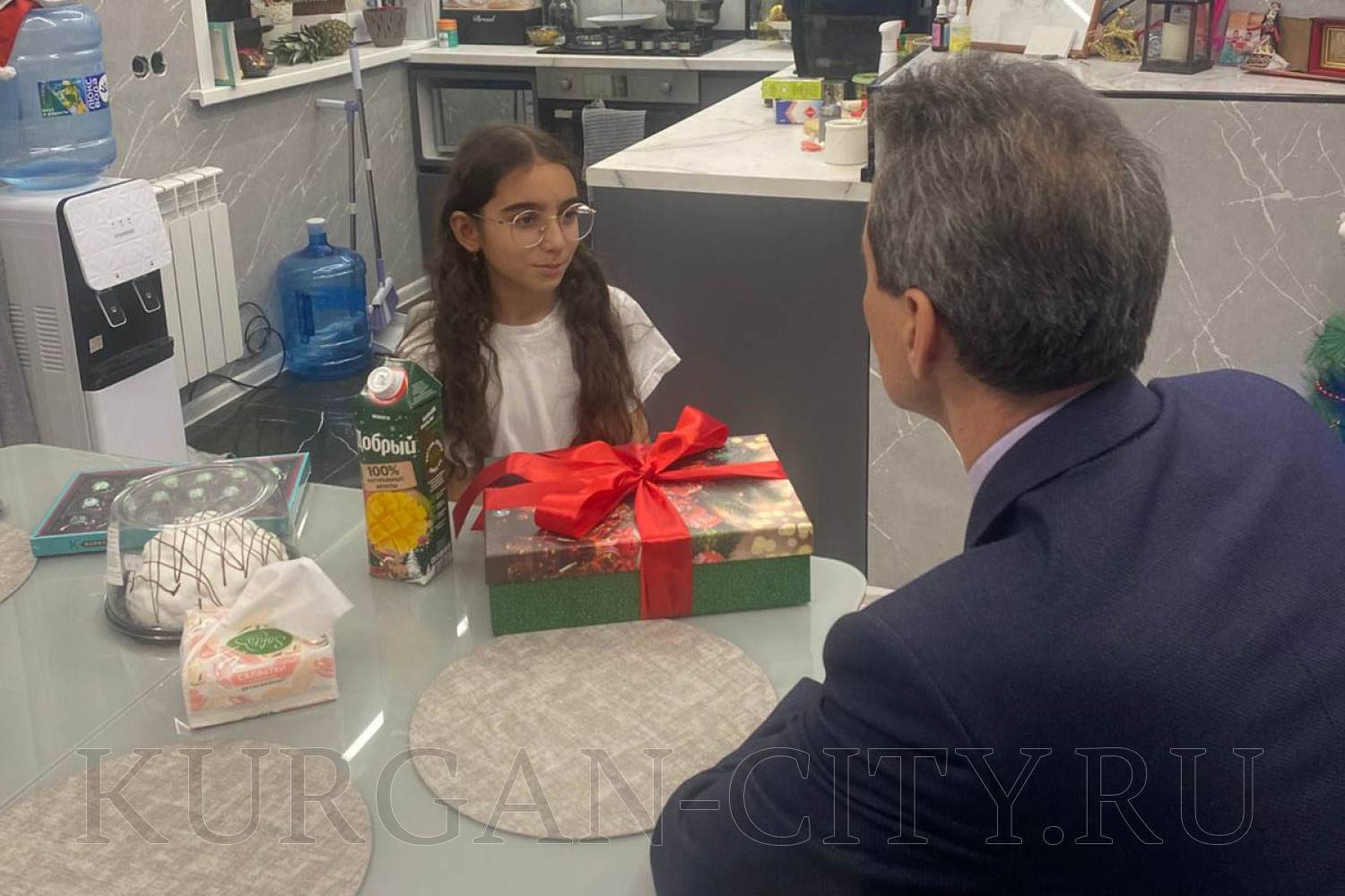 Пятиклассница Лена Заева из гимназии №31 тоже загадала, чтобы под ёлочкой лежали современные, умные смарт-часы. И когда её мечту исполнил директор департамента финансов и имущества Администрации города Кургана Игорь Зворыгин, Лена даже растерялась. Для неё стало большой неожиданностью и огромной радостью вручение подарка.