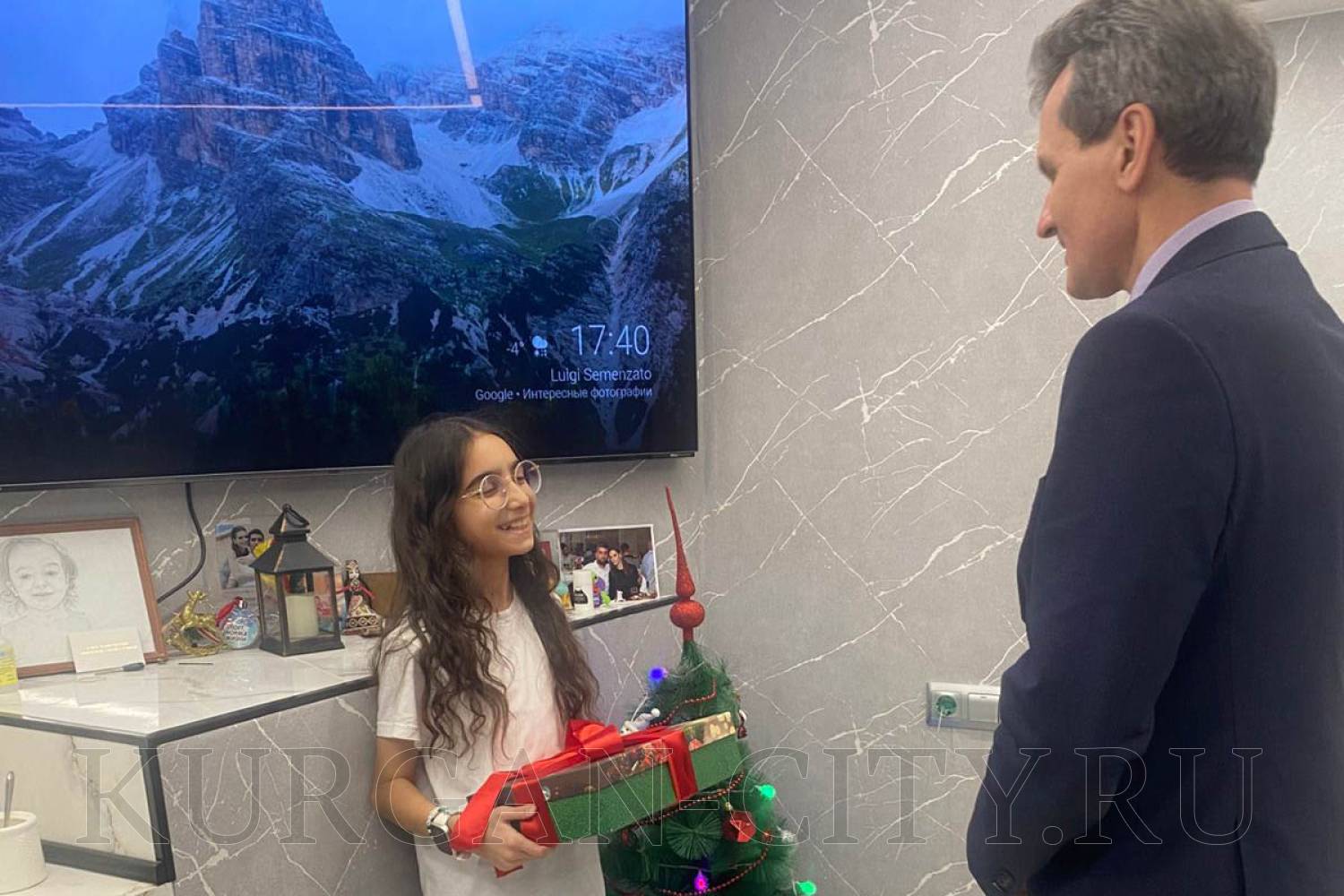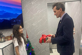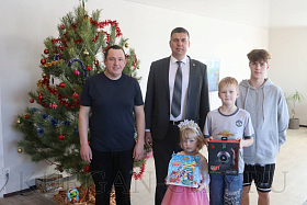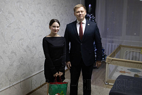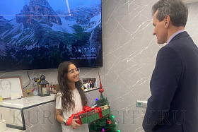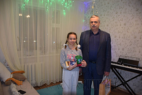 Сергей Романов поздравил семью Обласовых с Новым годом. Пожелал Ангелине успехов в учёбе, творческих удач и отметил, что такая активная позиция школьницы – это гордость не только родителей, но и города.