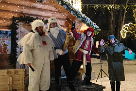 Весело и шумно было на площадке возле Терема Деда Мороза. Здесь артисты разыграли театрализованное представление по мультфильму «Простоквашино». Любимые сказочные герои – собака Шарик и кот Матроскин, почтальон Печкин веселили участников мероприятия. Также взрослые и дети танцевали вместе с аниматорами, выступили творческие коллективы города – творческий центр «Гамма», Образцовый коллектив ансамбль танца «Наследие» и эстрадно-драматическая студия «Дебют».
