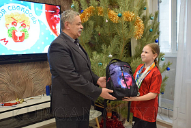 Игорь Зворыгин поздравил Маргариту с наступающим Новым годом, пожелал дальнейшего развития в спорте. «Когда много трудишься, тогда все получается. Желаю занимать первые места, добиваться замечательных успехов в любимом виде спорта, чтобы тобой гордились родители, а горожане знали, что в Кургане живет замечательная спортсменка и просто хорошая девочка, на которую надо равняться», - сказал он. Игорь Вячеславович добавил, что в городе открыта галерея почета «Дети – гордость Кургана», куда занесены дети, достигшие успеха в спорте, творчестве, искусстве. «Желаю, чтобы твоя фотография тоже висела на Доске почета», - отметил Игорь Вячеславович.