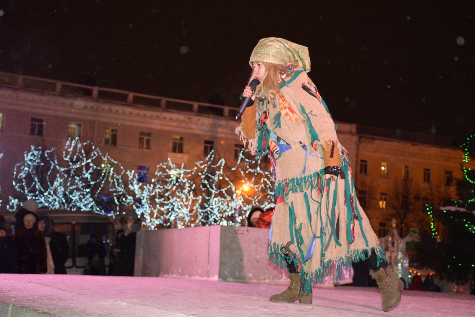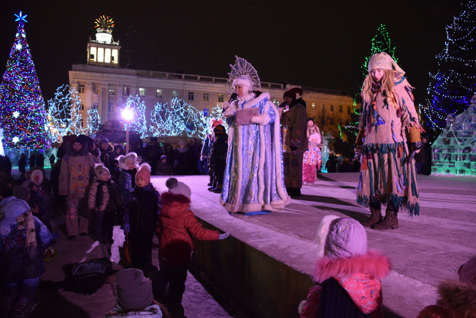 На сцене выступили артисты Кургана и творческие коллективы Городского дома народного творчества. Звучали новогодние и рождественские песенки, были шуточные потехи и даже рождественский флешмоб. Не обошлось на празднике и без сказочных персонажей – Бабы Яги, Деда Мороза и его внучки Снегурочки. Завершился праздник яркой финальной песней.