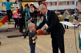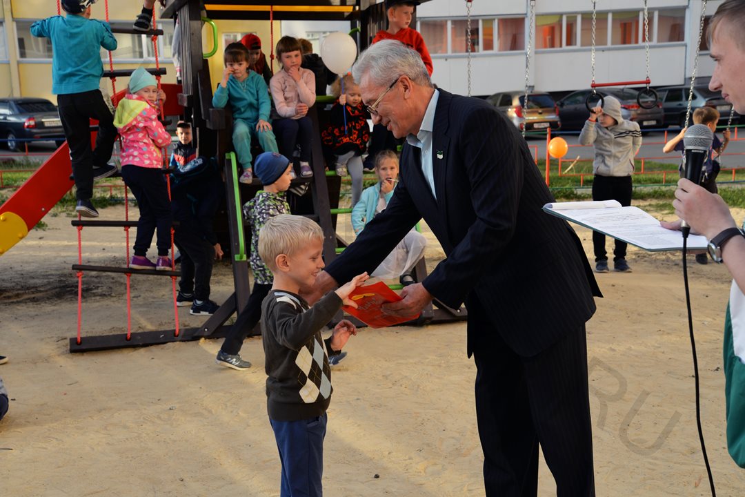 Не остались без внимания и юные жильцы дома № 5а по улице Профсоюзной. Сергей Сухарев поздравил детей с началом нового учебного года и Днем знаний, а самым маленьким школьникам – первоклассникам - вручил небольшие подарки.